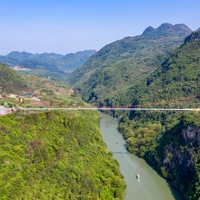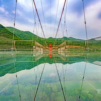 The 526m-long glass bridge (top) surface was 4.5cm-thick laminated glass with 99% transparency (middle), for visitors to take in the 200m drop. Photos: Lianzhou Qingtian Tourism Development Co. Ltd