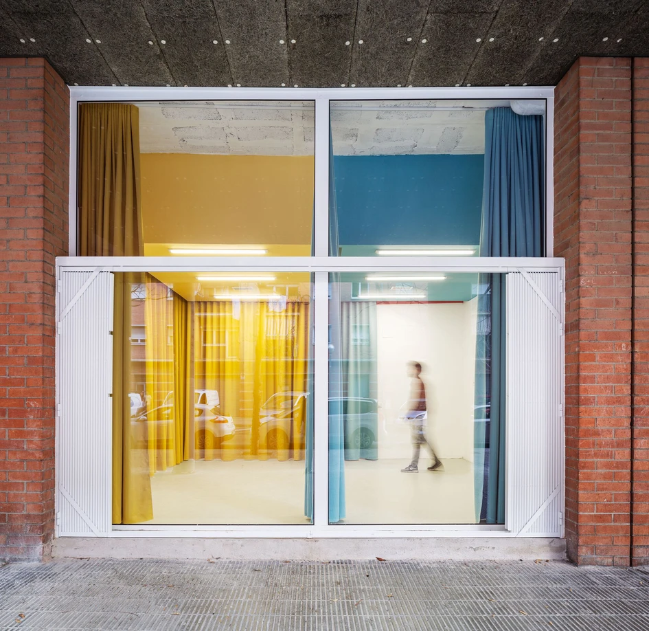 The Synergics initiative was set up in Barcelona in order to offer workspaces to small companies and freelancers at no cost, in return for community work. The project utilises unused commercial spaces while at the same time improving the social fabric of the city. In order to help as many people as possible, however, architects midori arquitectura transformed the Coworking Space in Baró de Viver which, though previously versatile, only offered space for one user at a time. ‘To address this problem,’ explain the architects, ‘the new space has floor-to-ceiling acoustic curtains that allow users to divide the room into two independent spaces, allowing two meetings or video conferences to occur in the same space without interference.’