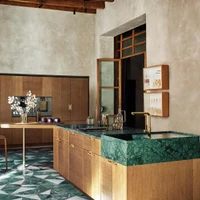 Cesar’s Intarsio Art & Order fitted kitchen demonstrates a succulent green marble surface