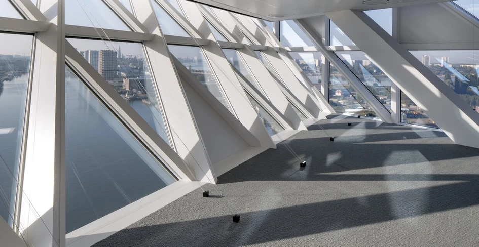 Port of Antwerp by Zaha Hadid, Belgium: office buildings are on the frontline of the public health campaign against Covid-19. Concept and realization FORUM OFFICE, Sint-Gillis-Waas, Belgium. Photos: Sarah Blee (Antwerp)