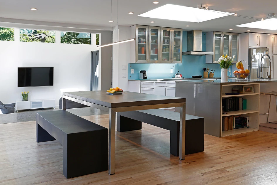 The large open-plan kitchen and living space of the Wyss Family Residence by Paul Michael Davis Architects can be closed off from the rest of the house to create more privacy if necessary. Photos: Mark Woods