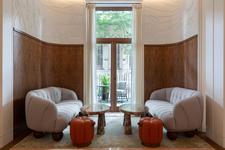 Bryan O'Sullivan Studio's Berkeley Bar and Terrace also contains The Snug, an intimate room with a mural by New York artist TM Davy, its own sound system and a call-for-service button, which can be used for more private occasions. Photos: James McMcDonald