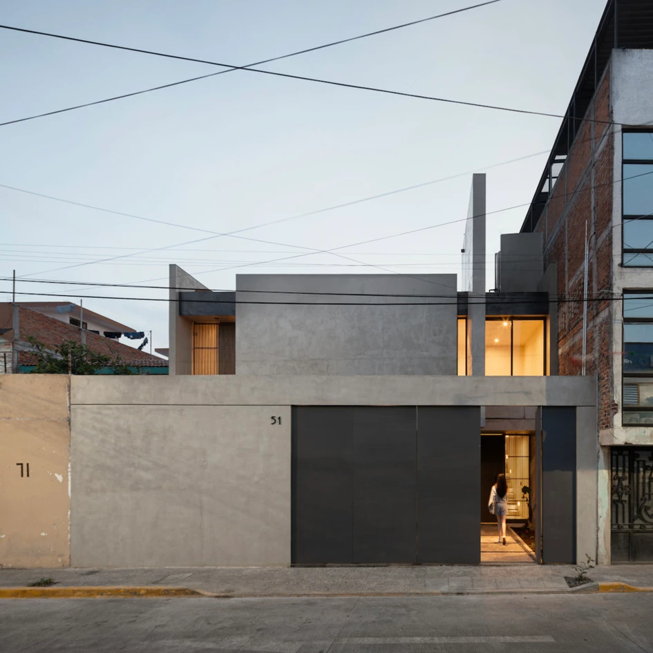 Whether due to urban regulations, typologies, land use or even informality in urban development, building between adjacent structures limits the number of faces of a new architectural volume. This reduction typically results in a building with only two facades at the front and back and also presents a spatial challenge in terms of achieving adequate illumination and ventilation along an apparent single horizontal axis.
