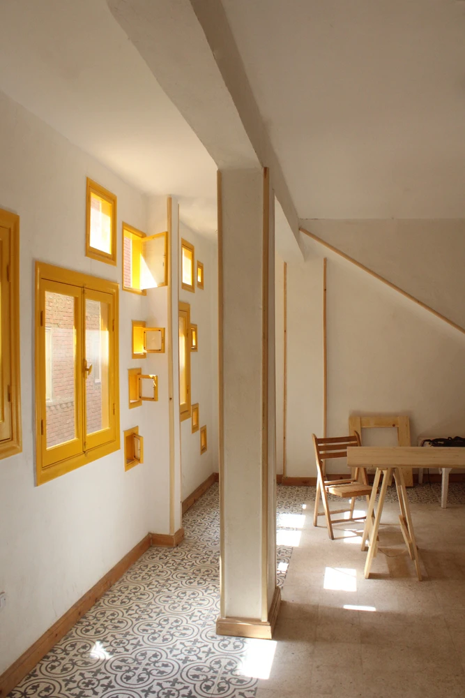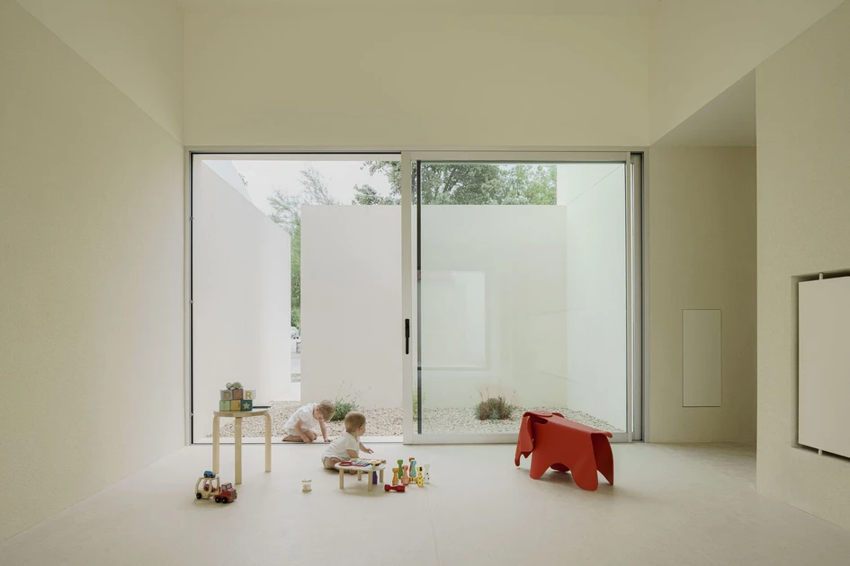 Rather than relying on conventional facade windows, Iterare arquitectos rely on window doors that allow light to enter without being overtly visible. A semi-loose foreground in Kindergarten in Aguas Nuevas serves a dual purpose: protecting the windows from direct exposure to the street while creating an air chamber with a patio function. This not only privatises the school's front but also avoids enclosing it.Architecturally, the design recesses the surface through which light enters, illuminating the building's interior from a secondary plane. Capturing light in this manner imparts a soft form of illumination which spreads an intimate atmosphere in relation to the interior patios. The arrangement of solid walls at different heights creates a play of shadows and light which injects movement into the educational and recreational spaces, enhancing children's perceptions.