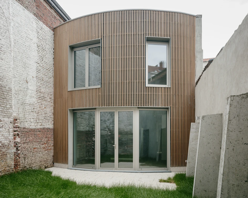 In an eclectic aesthetic neighbourhood, in a parcel that was once a street-fronting garage, Koto emerges with two distinct volumes that subtly resist the surrounding walls that confine them. The street-facing volume features a semi-open first floor, providing direct access to the second volume. By introducing a communal patio nestled between the structures, Notan Office's design multiplies its perspectives, unveiling interior facades.The rounded facade shapes enhance spatial perspectives both within and beyond the building