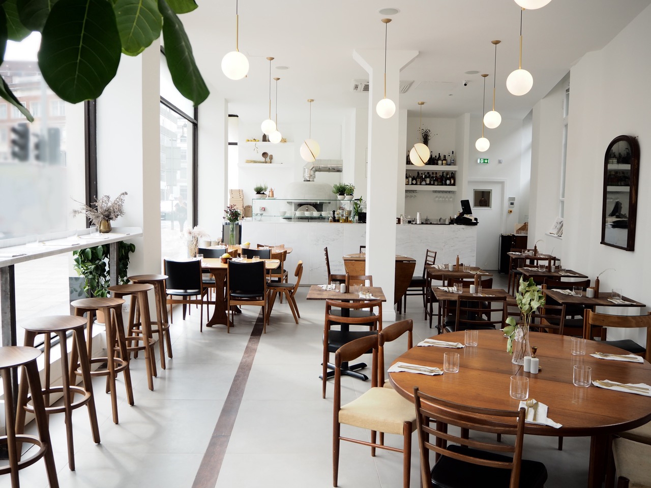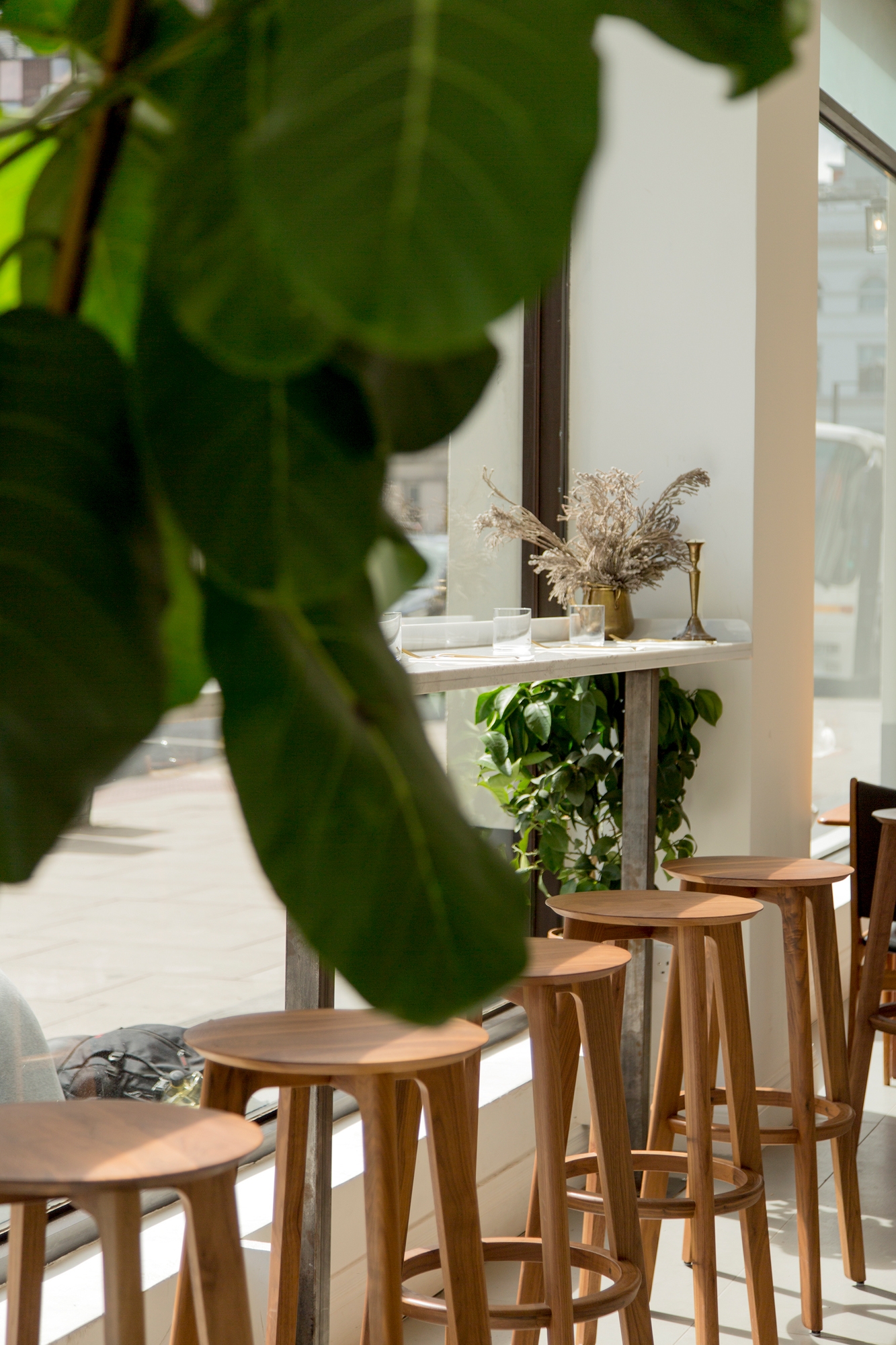 With the influence of Naples, the land where lemons grow, 'Over opens in the art district of the British capital. 'Over is a traditional Neapolitan cuisine restaurant with an innovative contemporary twist.Inspired by the beauty and harmony of an artistic space, Quiet Studios creates for 'Over a serene, pure and bright space, with the combination of noble materials such as marble, ceramic, brass and walnut. The chosen furniture is teak Scandinavian-style from mid-twentieth century, carefully selected from various antique dealers in London. This is complemented by the elegant barstools in walnut wood from Zeitraum.