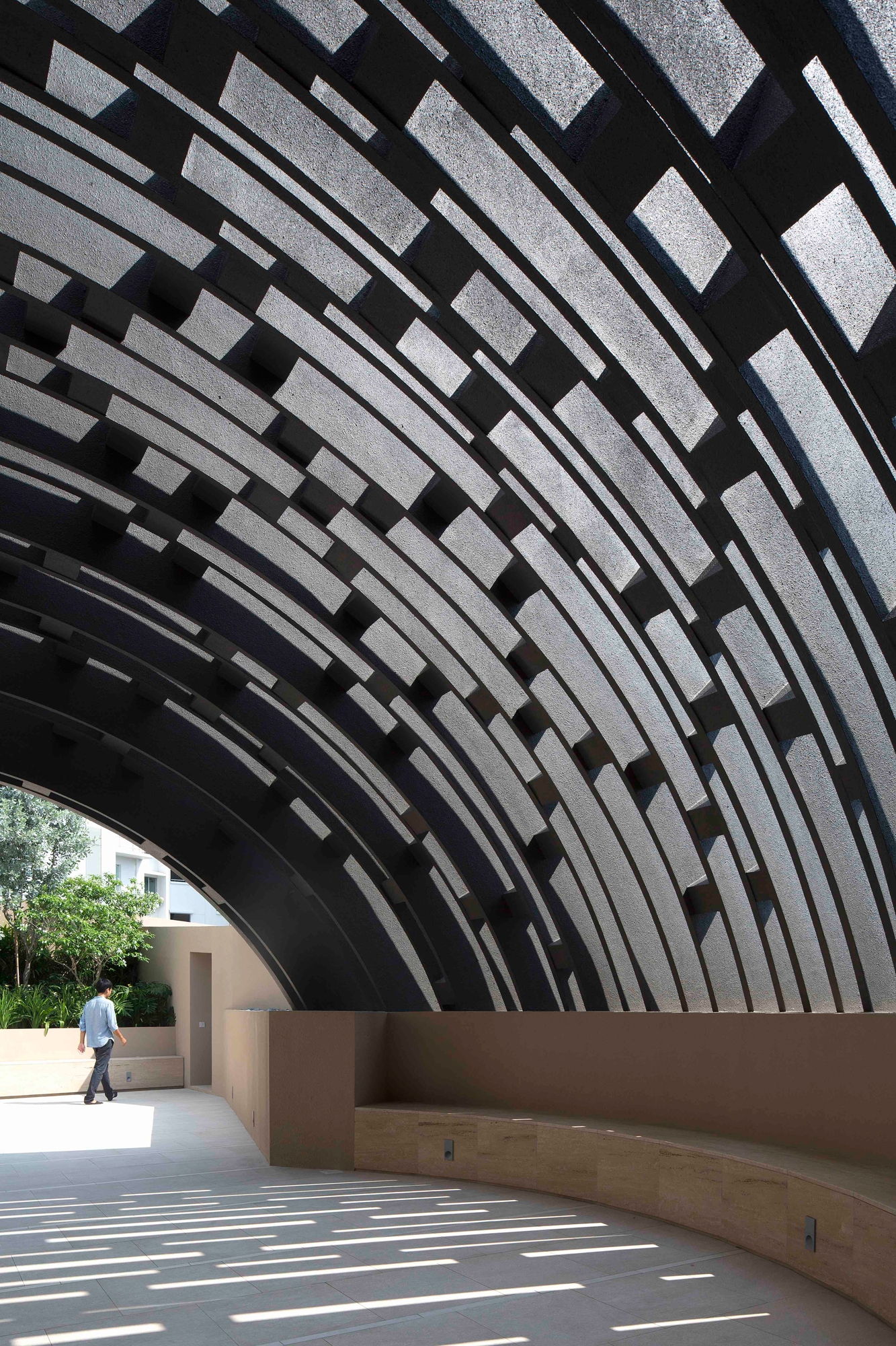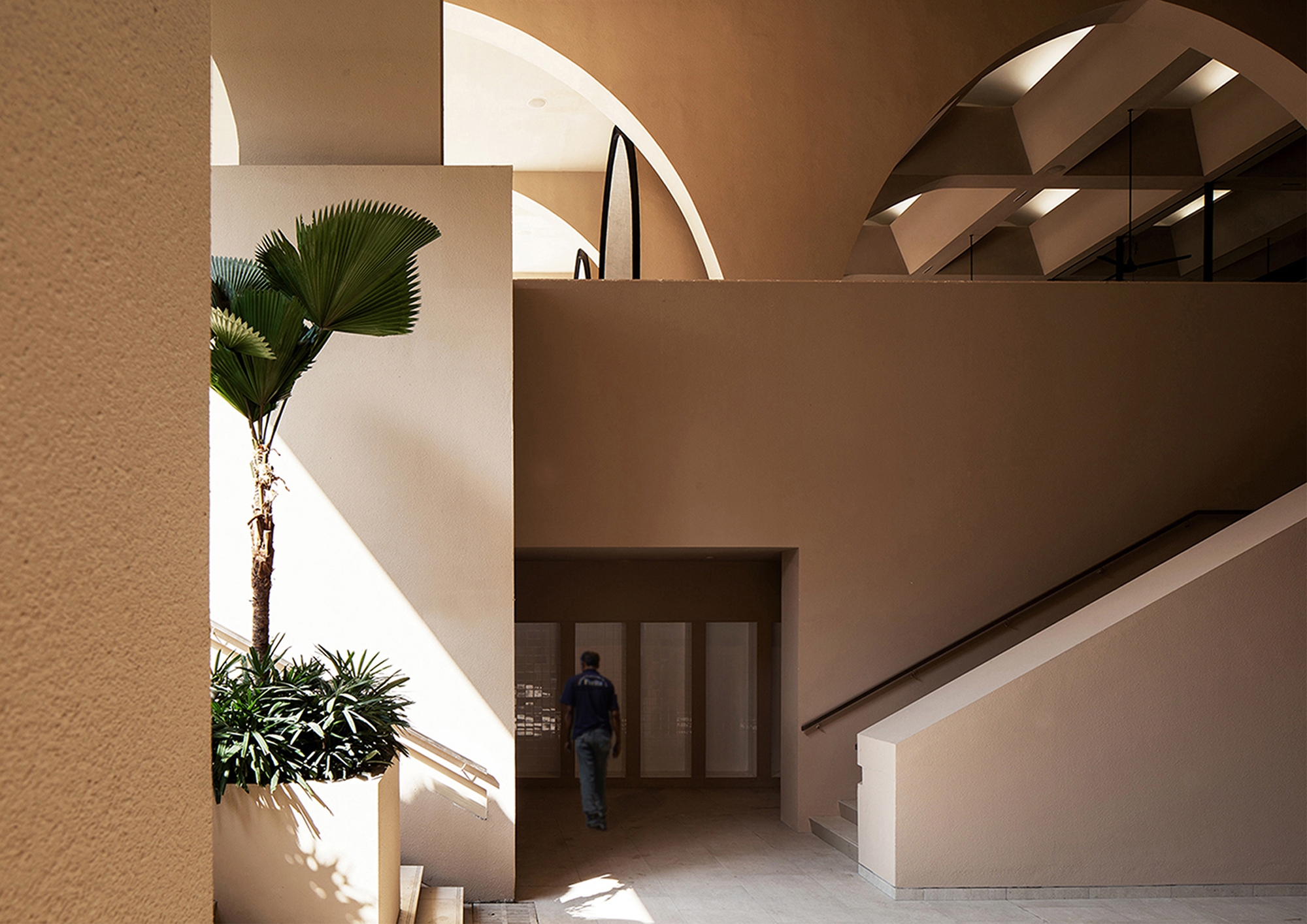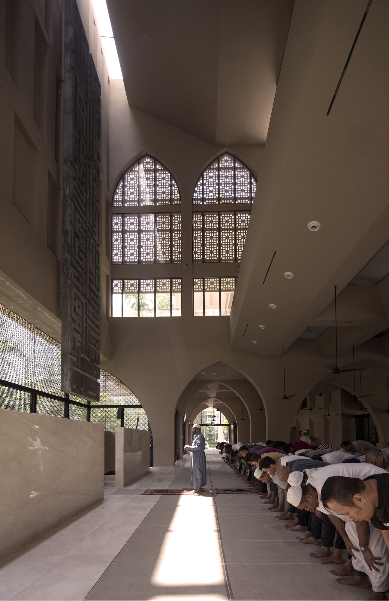 This ambition for the openness posed much challenges in view of the tight site and its proximity to the neighbouring flats. Physical porosity allows visual connection to the neighbourhood and extends the its spatial field beyond its boundary but poses the issues of sanctity and threshold expected of a mosque. Climatically, poriosity offers much benefit of ventilation and daylighting but presents challenges of protection from the monsoon rain.