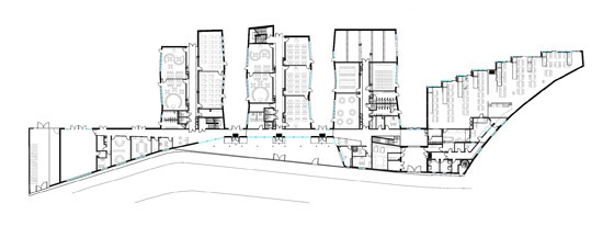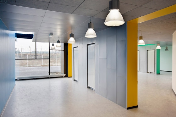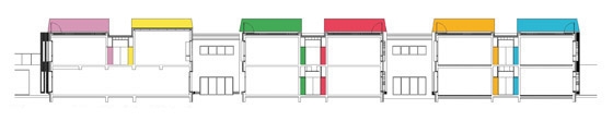 In this constellation, the preschool and the elementary school yard are located sidewards in contrast to the units for the teachers. Placed on the north and south end of the site, they are protected by noise and acoustic screen made up of circular tubes of different densities from the west which also absorb the noise during the recreation.