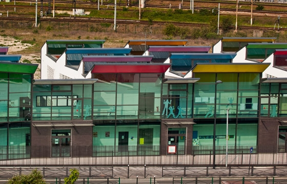 This configuration makes it possible to limit the façade exposed direct to the noise and to create independent units emphasised by the green transparency for the preschool, the recreational centre and the elementary school which are connected between them by an interior street open towards the forecourt.