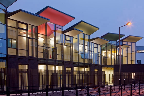 The school complex of Bailly is situated on a changing territory and is located on the starting point of the reconstruction of the scale of the district. The expression of the project is inspired by this specific context of the material used – glazed brick – and by the idea of the roof which give reference to the lanterns of the cathedrals.
