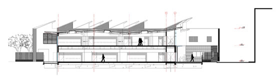 The classrooms are organised in the north-south transverse on two levels which end on the firewall on the side of the railway. They are structured by horizontal circulations and interior gardens protected by noise by a glass screen.