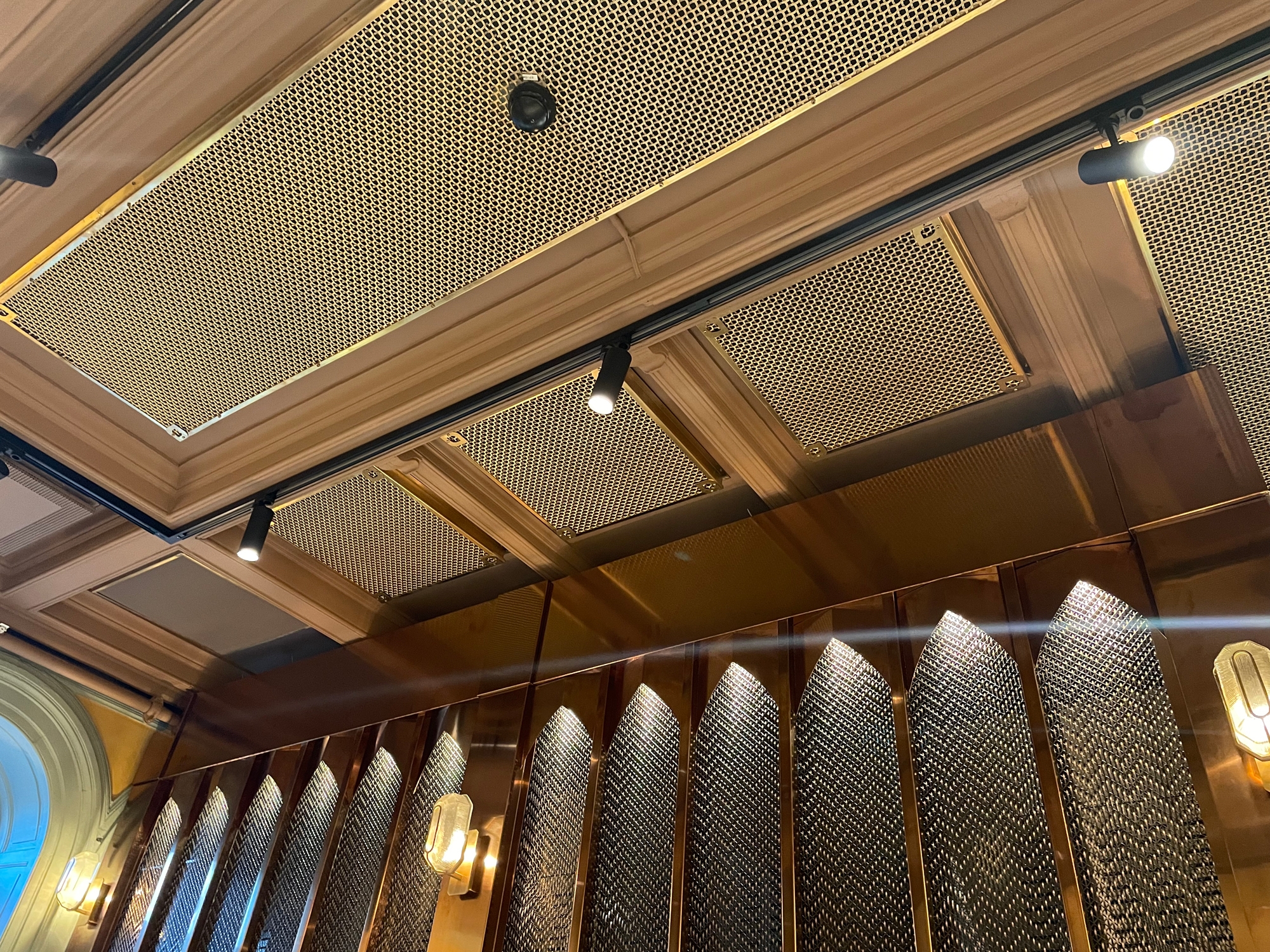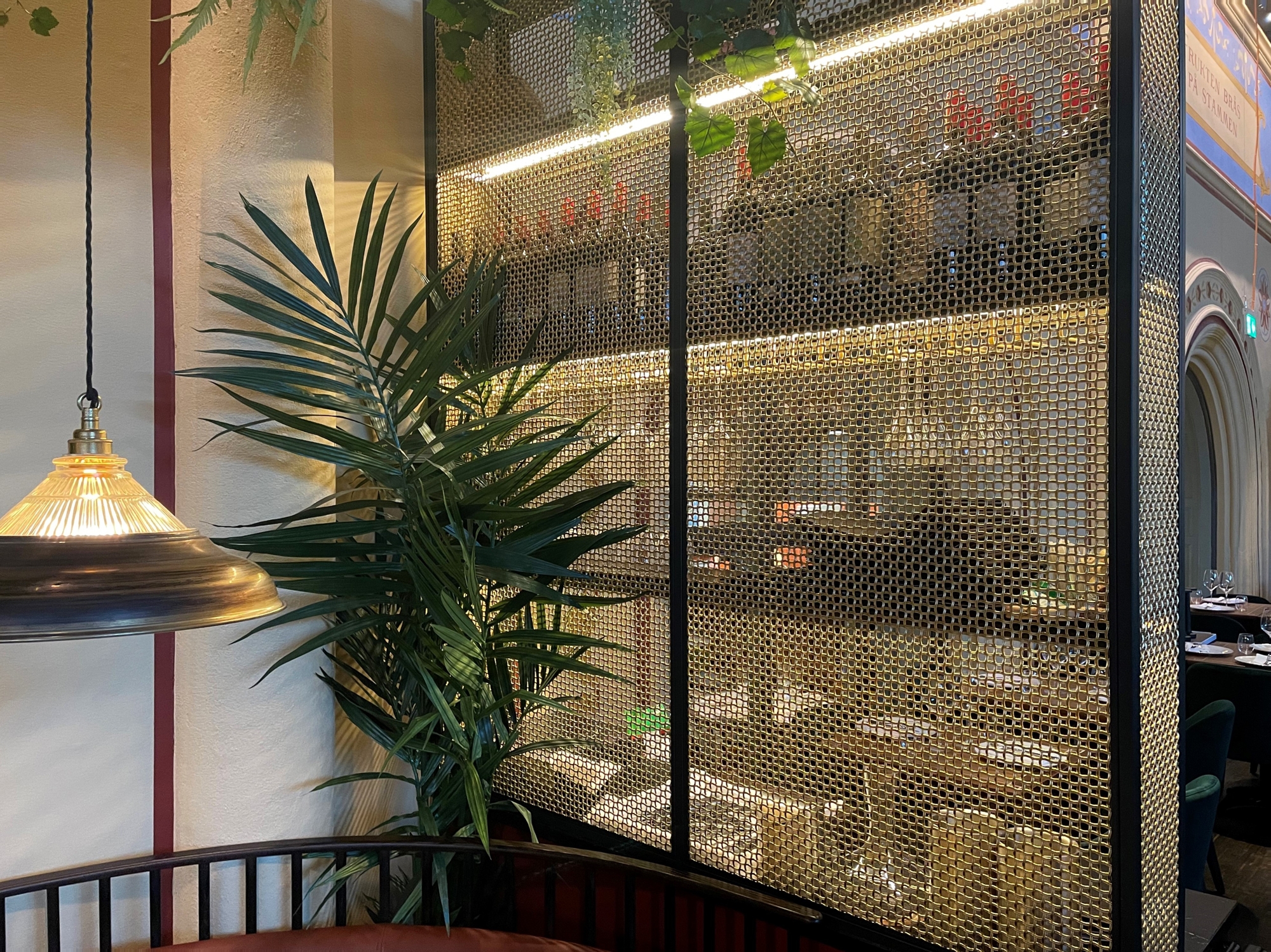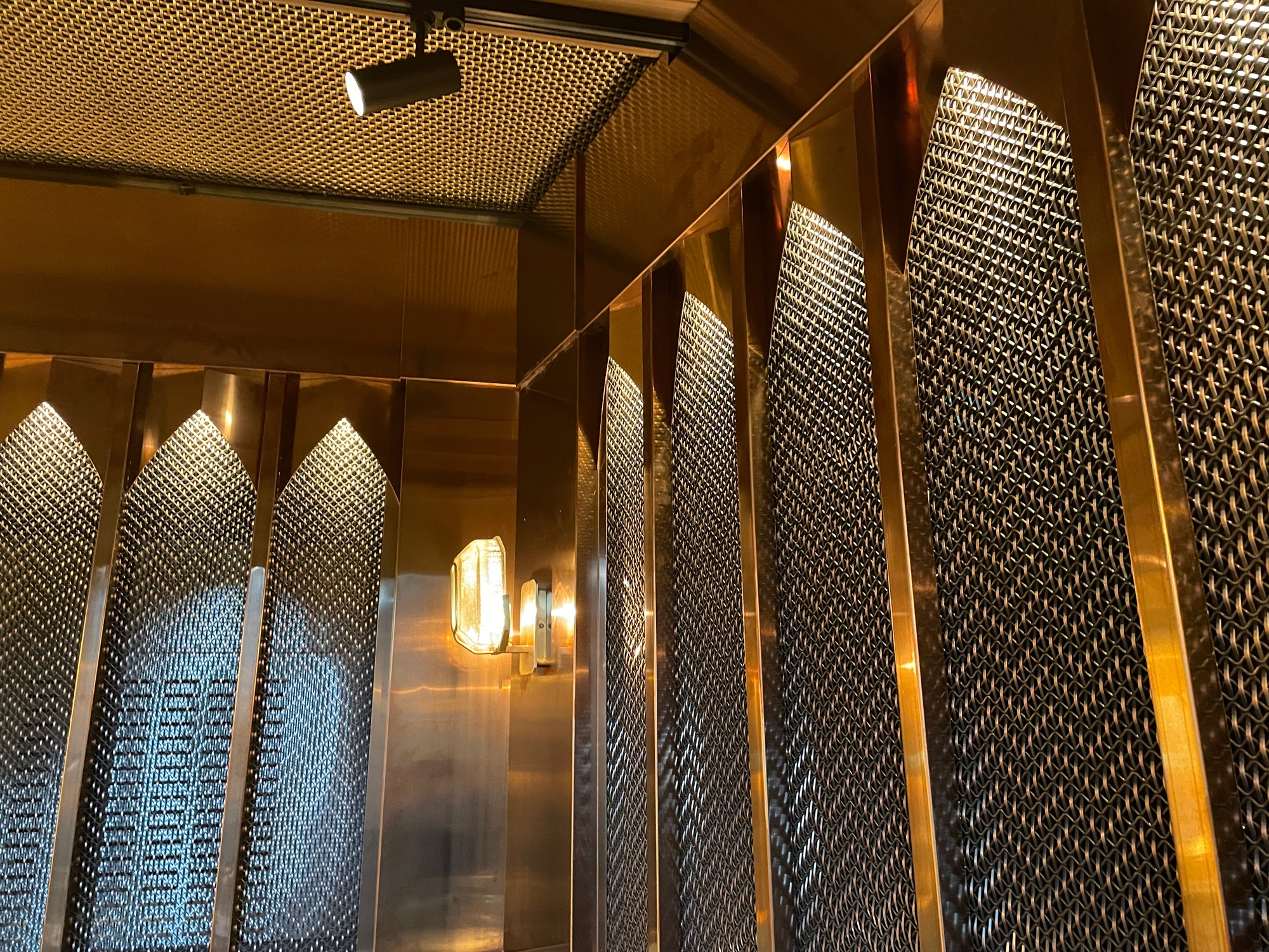 Within the historic and newly renovated Östermalms Saluhall marketplace in Stockholm, the new restaurant Beirut Café includes specially manufactured metal mesh for its vibrant interior. Banker Wire M22-83 in braided solid brass enhances the look by being used in dividing screens, shelving and counters and in ceiling tiles and panels. The Banker Wire TXZ-3 is an antique copper-plated metal mesh designed like towers to enhance the atmosphere around the room. Pahlfer, Banker’s representative in Sweden, provided this metal mesh paired by architects to bring a clean yet warm feel to the interior design. The antique-plated metal meshes are both polished by hand to make the bright alloy sweep out into the dark oxide layer, which creates additional depth and a soft feeling in the metal panels.