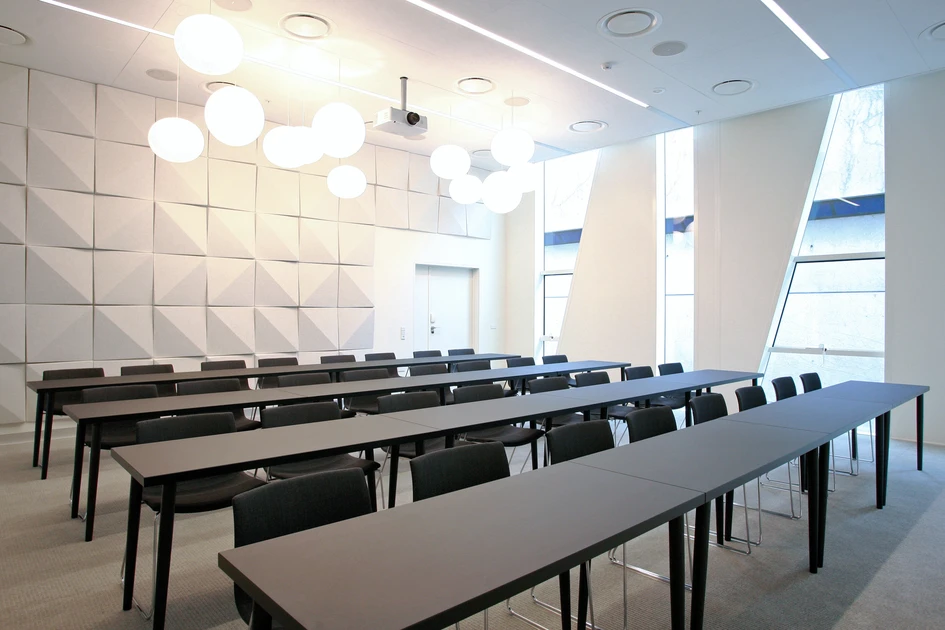The result was SOUNDWAVE Bella. Bella was designed to be used as lightweight sound absorber in the upper frequency range (500 Hz and above). This panel helps reducing disturbing reflections of environmental sounds such as voices, telephones etc. Material: recyclable moulded polyester fibre. Colours: Anthracite, grey, green and offwhite.