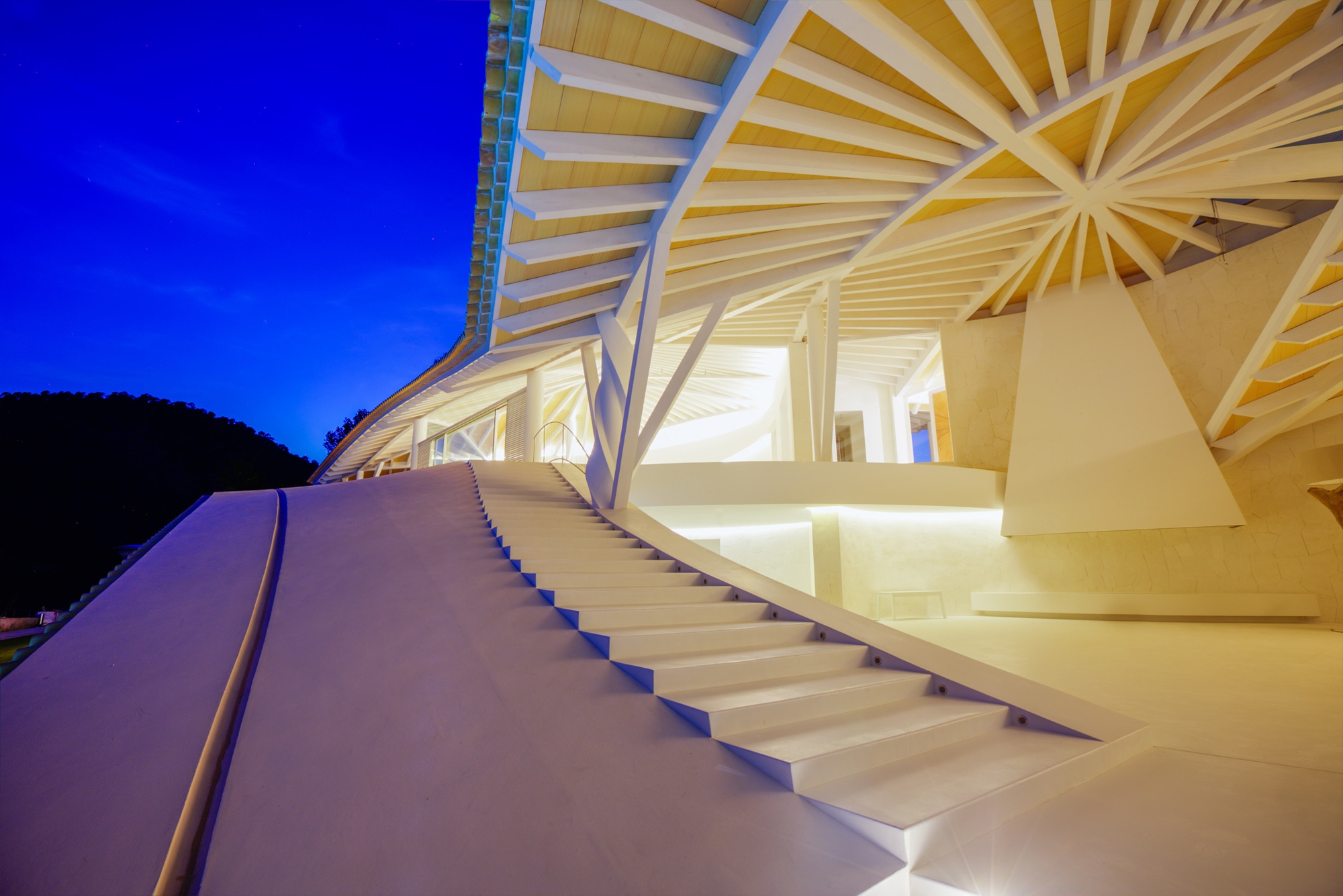 Esta extraordinaria villa situada en Mallorca es una de las obras maestras de Alberto Rubio. Los techos blancos y las ondulantes curvas en armonía con la naturaleza – el mar, el cielo, la costa – son uno de sus temas favoritos; elementos que se reconocen como sus "iconos" en la isla. La casa impresiona a todo el mundo con sus majestuosas curvas, sus amplios interiores de planta abierta y los techos con vigas abovedadas. Hay cinco dormitorios, un gimnasio y una sauna. El espacio al aire libre ofrece terrazas curvas, una gran piscina y una zona al aire libre de comedor y cocina. Es difícil decir qué admirar primero: ¿Es su elegancia, su belleza o su atmósfera de ensueño lo que te provoca tan diferentes sensaciones? El propietario de esta exclusiva casa no sólo está orgulloso de tener una fantástica propiedad en Mallorca, sino también de poseer una obra de arte arquitectónica.