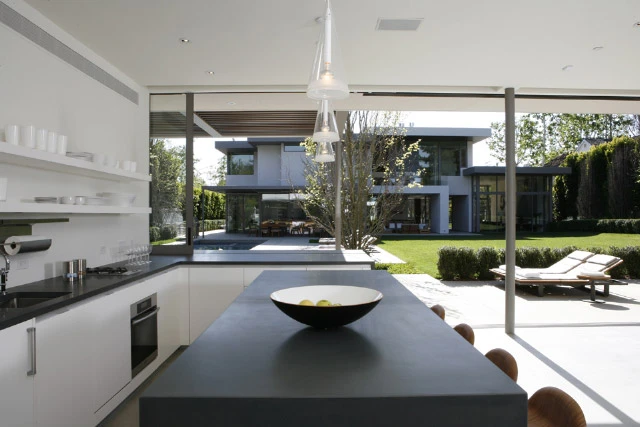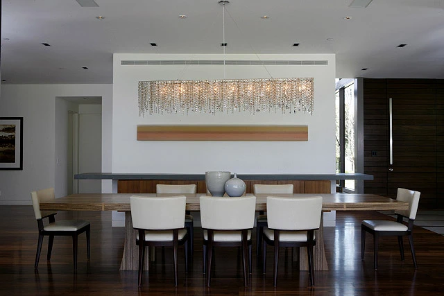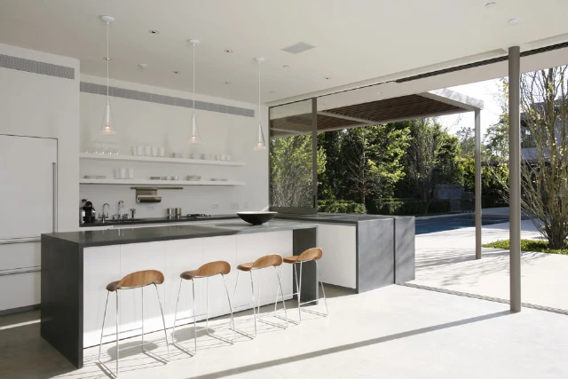 The commission was to create a complete interior design scheme for a 10,000 square foot modern main residence as well as a 2,000 square foot guesthouse. In addition to the interiors, MLK Studio was hired to design all 10 bathrooms as well as the main kitchen and guesthouse kitchen, in collaboration with Boffi. Much of the furniture was custom designed by MLK Studio and fabricated at the firm’s trusted local Los Angeles workshops. Briefed thoroughly by the client, MLK Studio worked with a neutral palette throughout the house, skillfully mixing textures to create the depth and layers that are apparent in the sophisticated design.