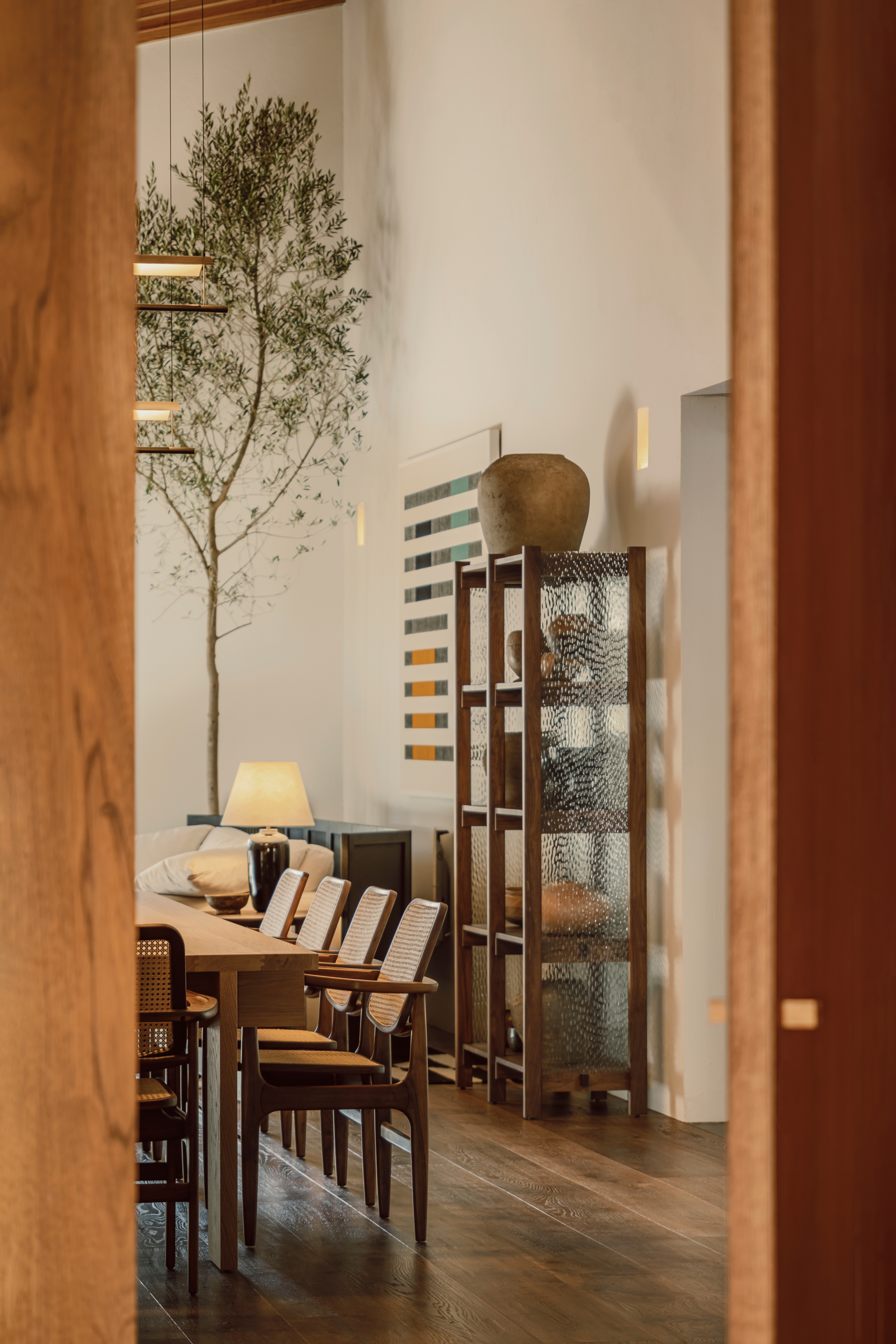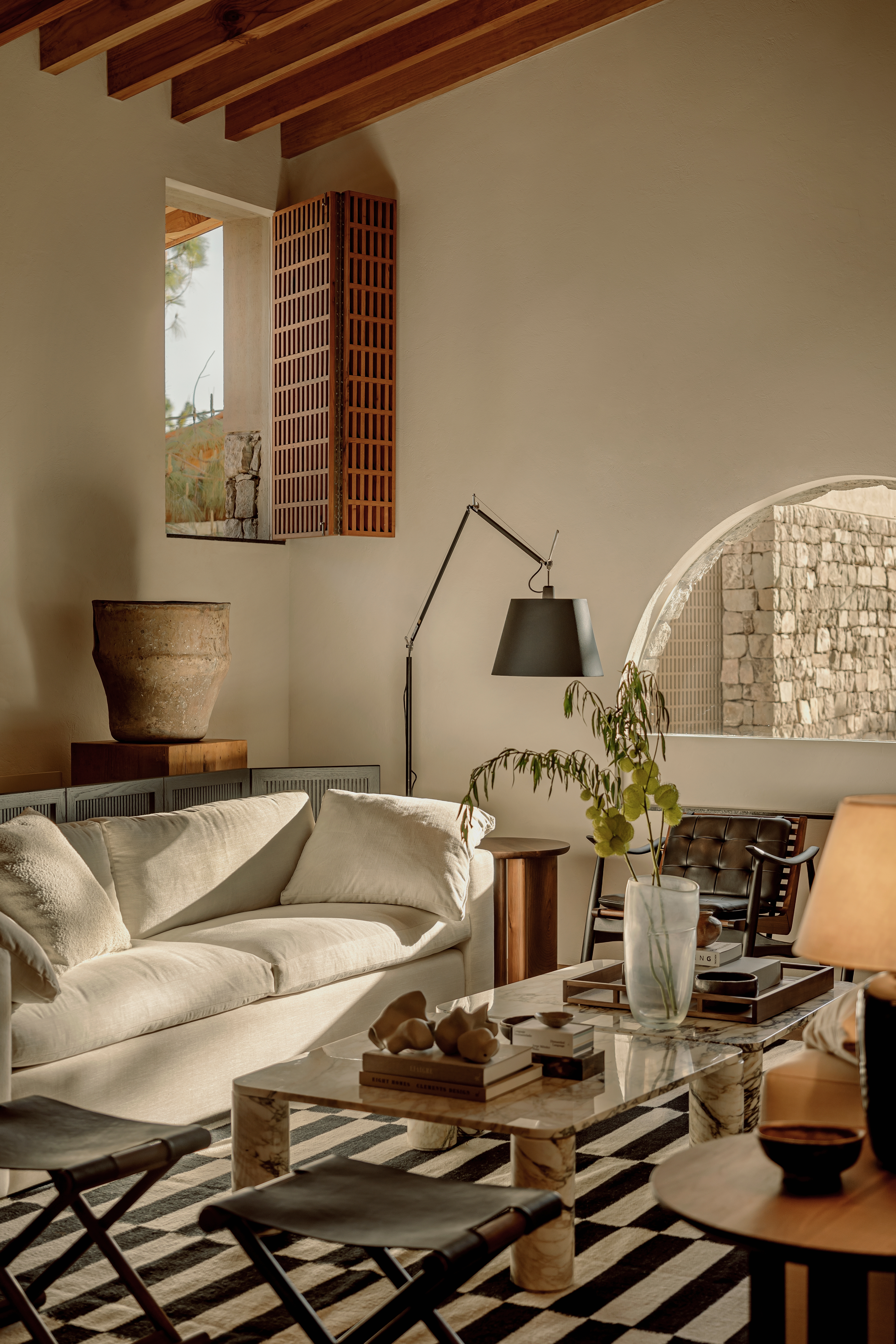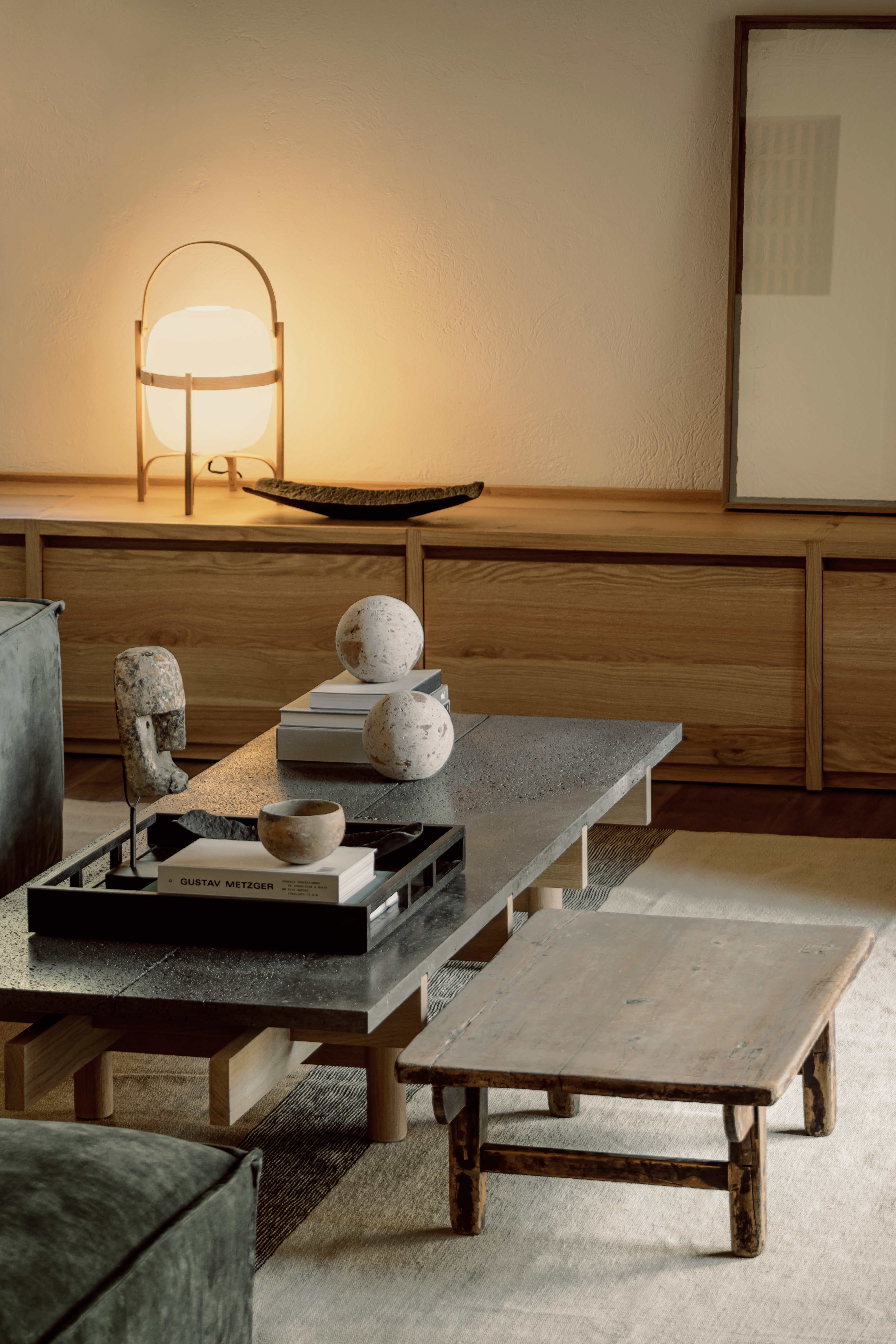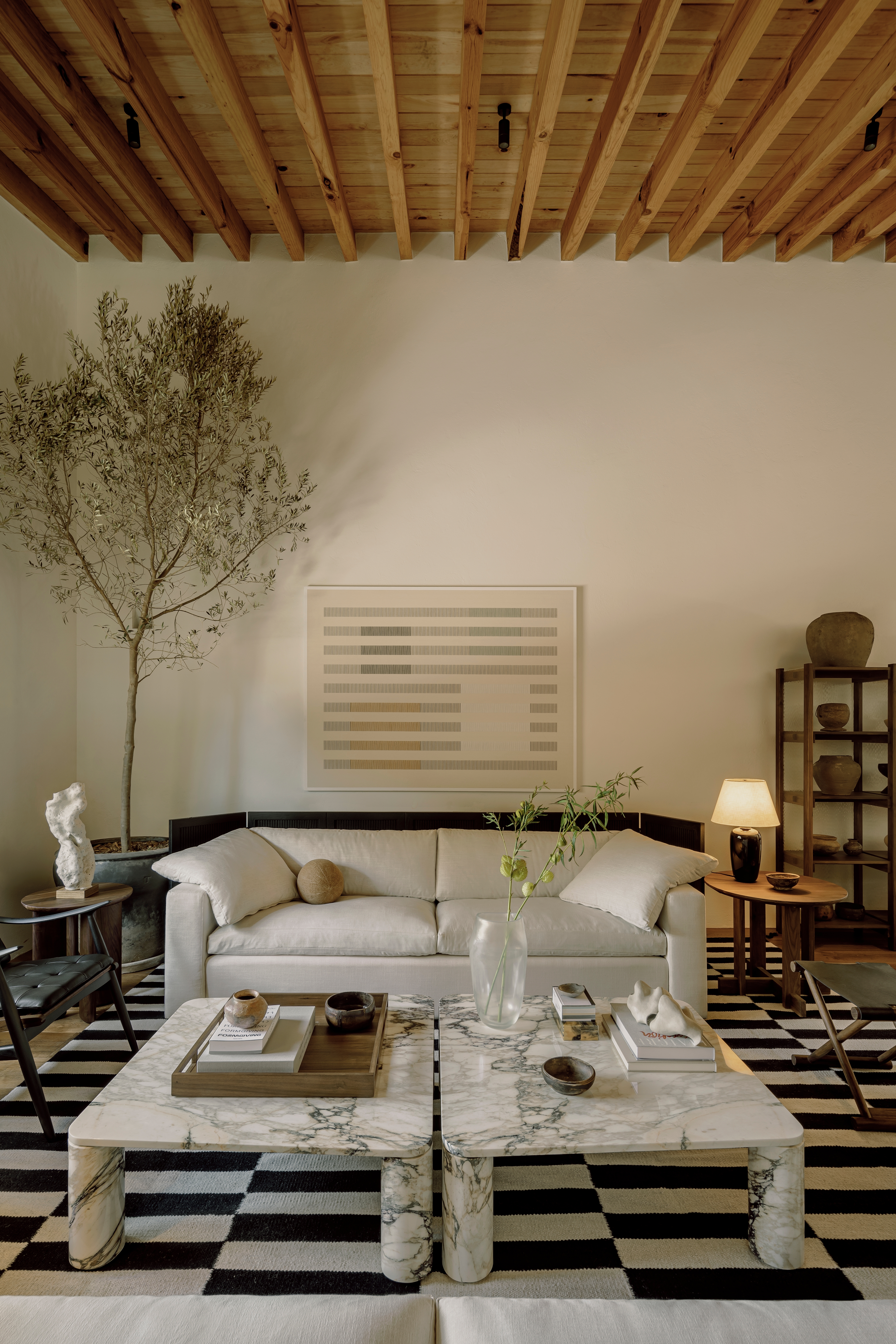 However, Aagnes' commitment is not limited to regionalism as a stamp, but faithful to his style, they seek a dialogue with contemporary pieces, materials and forms. Rough and sculptural wooden objects—almost brutalist—that has a conversation with different copper pieces from the towns of Michoacán; marble tables perfectly structured in their angles that are confronted with the agile basketry of Tequisquiapan; silhouettes that emulate Japanese minimalism but also take advantage of the detail of the typical mexican waist loom. In this composition there is no hierarchy between popular artcraft, classic pieces and author design—the reading of the space is more oriented towards a timeless balance where the past, the present and the future are valued on the same level.