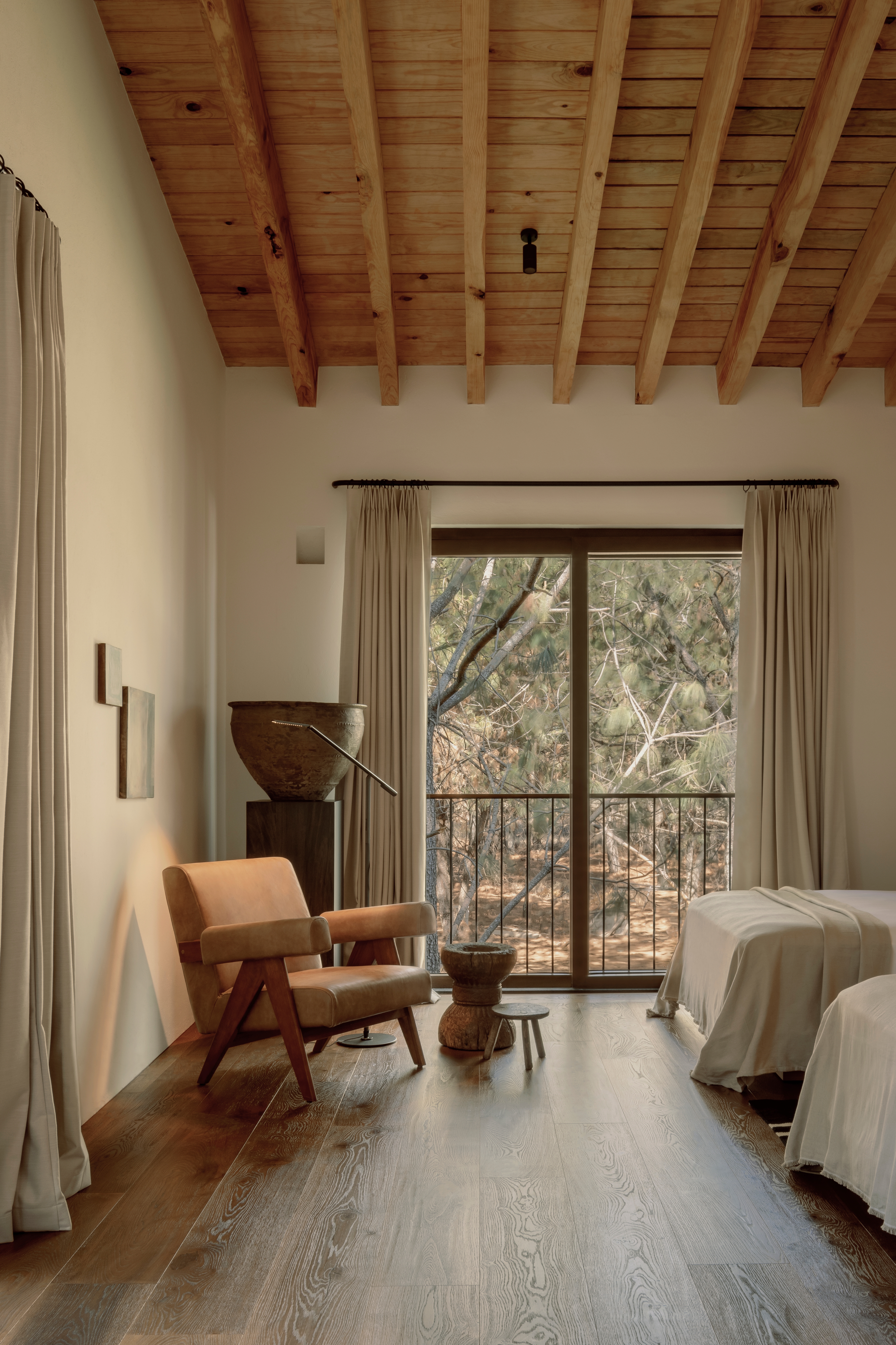 Casa Cedros is synonymous with all of this, in which we find a sophisticated use of wood and stone—materials from the forests of Jalisco—where the lighting is a living composition that alternates between windows and latticework, and the patio is the place where social life converges, but also is a space for contemplation of the landscape and the nature. A house that is perfectly intertwined with Tapalpa as a destination that offers the flavors and smells of the Mexican forest, with extensive areas of communities that work with clay and harvest the field to keep their traditions alive. Traditions that survive thanks to the respect for craftsmanship, for the care of the place of origin, and among with oral history were reasons of inspiration for various characters in the literature of Juan Rulfo, Juan José Arreola and Agustín Yáñez.