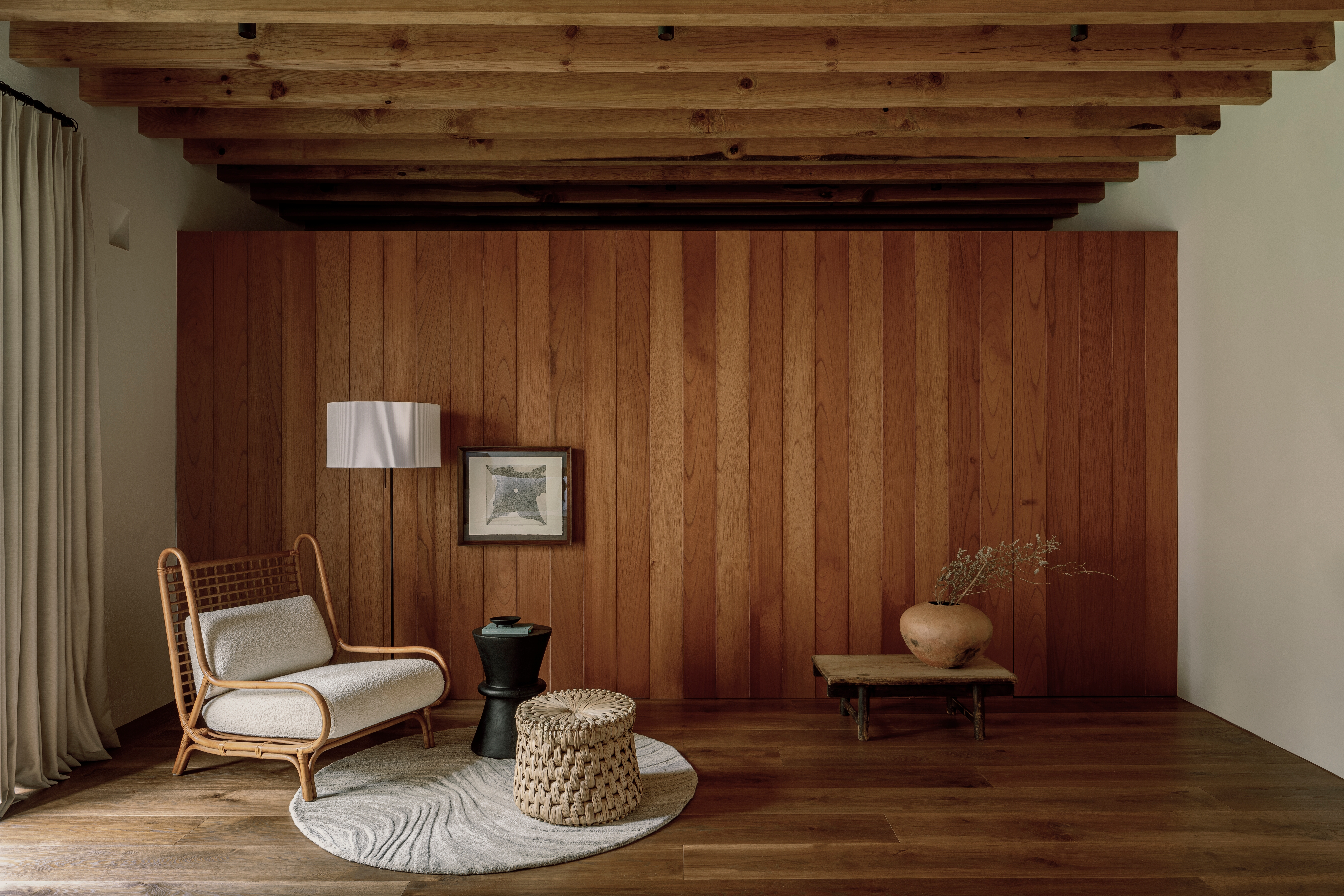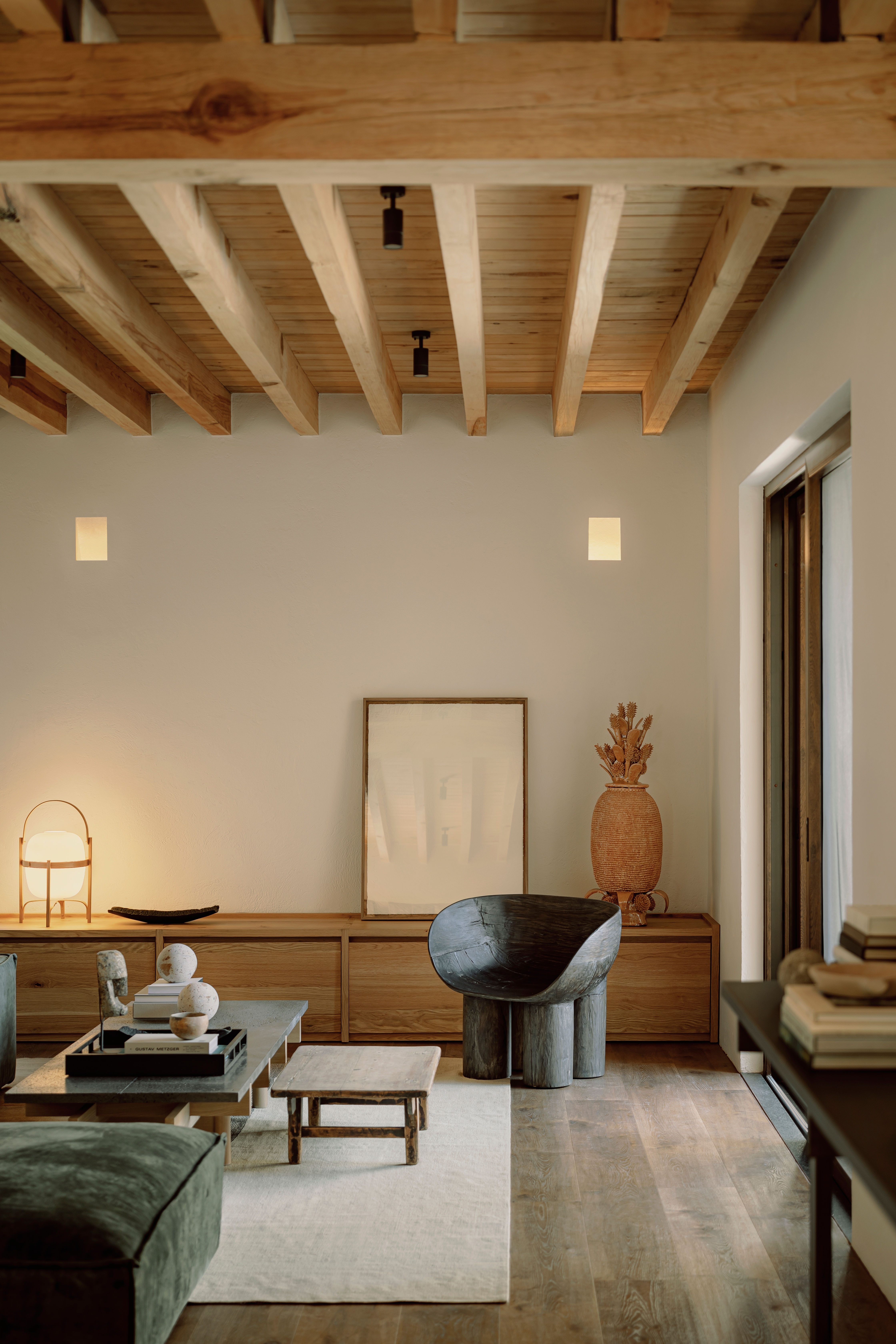 Casa Cedros is one of the most recent projects for the studio and undoubtedly encompasses entirely Aagnes's aesthetic. The house is located in Tapalpa, a town in the southern mountains of the state of Jalisco, in Mexico. The architectural project was design by Sergio Ortiz, a renowned architect who has taken up from his own voice the most outstanding elements of the so-called Tapatío School of Architecture (also known as Mexican Regionalism with its origins in Guadalajara). In his work we not only find references to Luis Barragán, Rafael Urzúa or Pedro Castellanos, but also a genuine appropriation of what has marked Mexican Regionalism: chiaroscuro that detonate new spaces, the use of local and brute materials such as cedar and black quarry, and perhaps one one of the greatest successes of this artistic movement: the patio as a leading element.