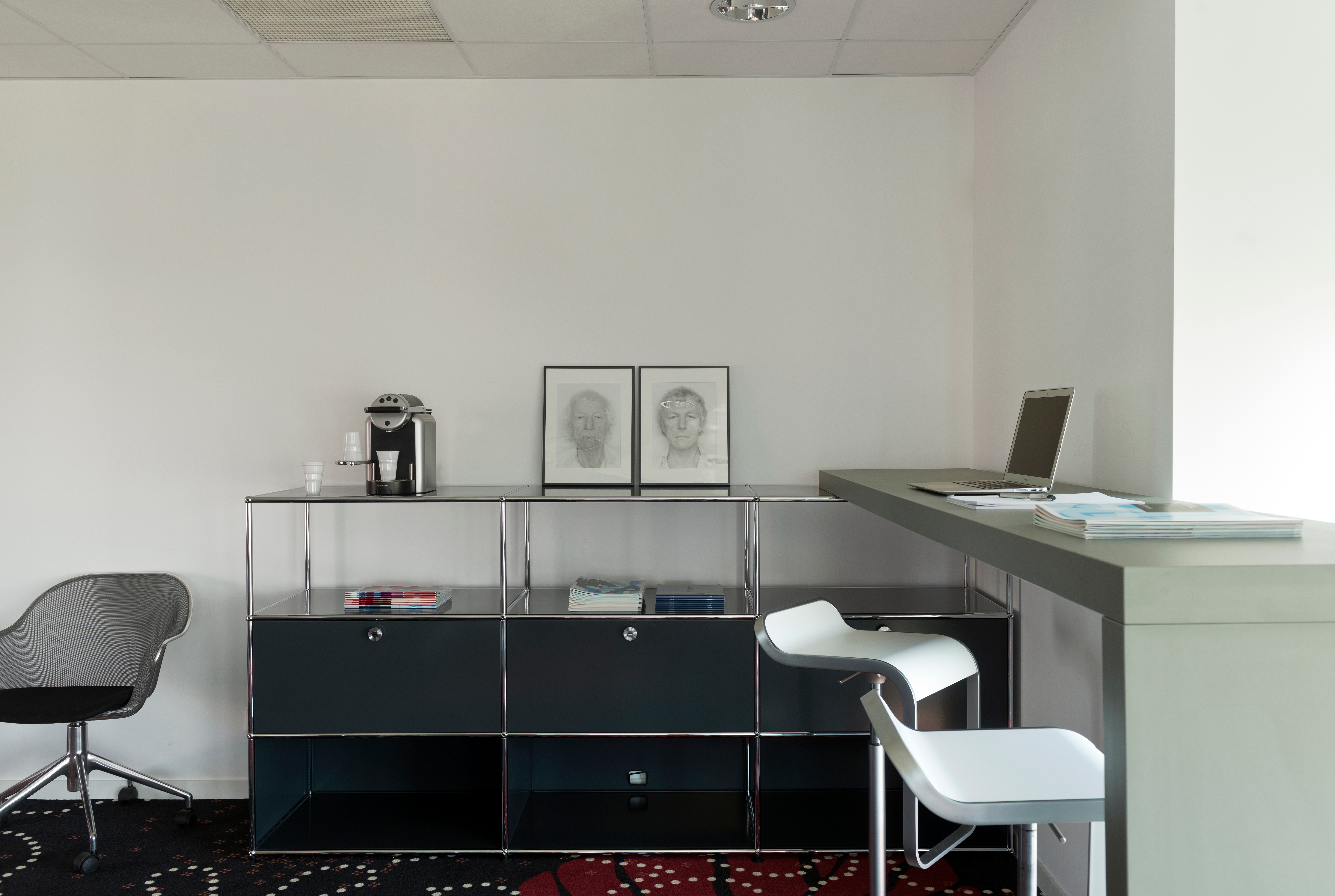 This is an "image project" in which the client asked us to organize 5 identical spaces in front of his main office. These spaces were dedicated to management, meeting with clients, lunch with clients. You can see these spaces from the airport of Nice, and they are part of the image of this business school. Bel Oeil managed to set 5 different organizations, bringing as much flexibility as possible, and very functionnal and comfortable settings. We used brands such as USM Haller, B&B Italia, Tecno Spa, Knoll International, Inno, Foscarini or Porro to achieve this prestigious project.