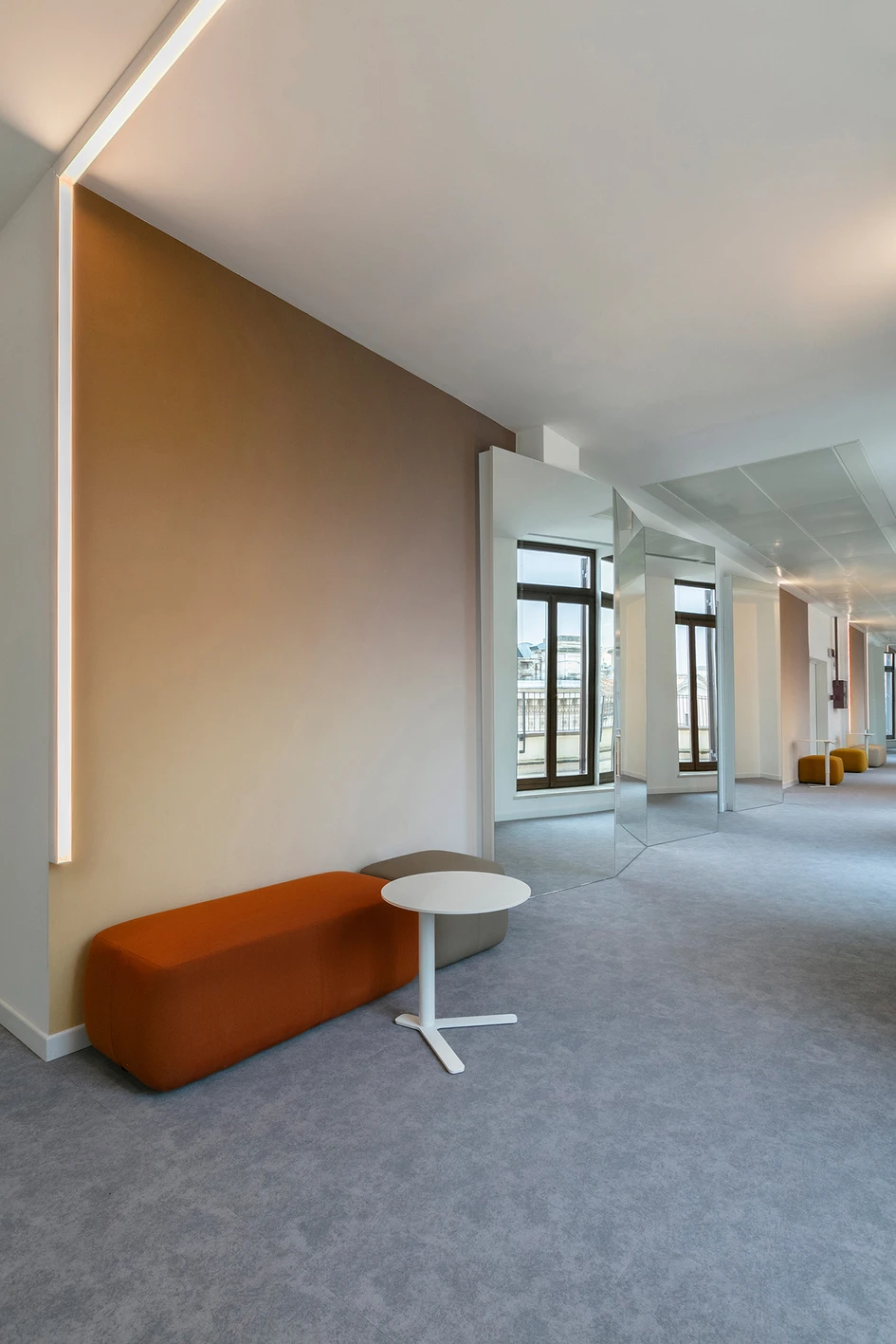 Creados en el interior de un edificio histórico de la capital, los espacios de trabajo de un holding italiano presentan opciones de diseño inéditas en las que la arquitectura interior se combina con el revestimiento decorativo de la pared para lograr la máxima unidad formal. El concepto, diseñado por Studio Il Prisma, expresa al máximo las expectativas de la empresa y, al mismo tiempo, las variantes de las colecciones de revestimientos murales de Glamora.