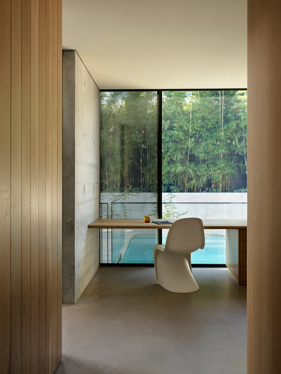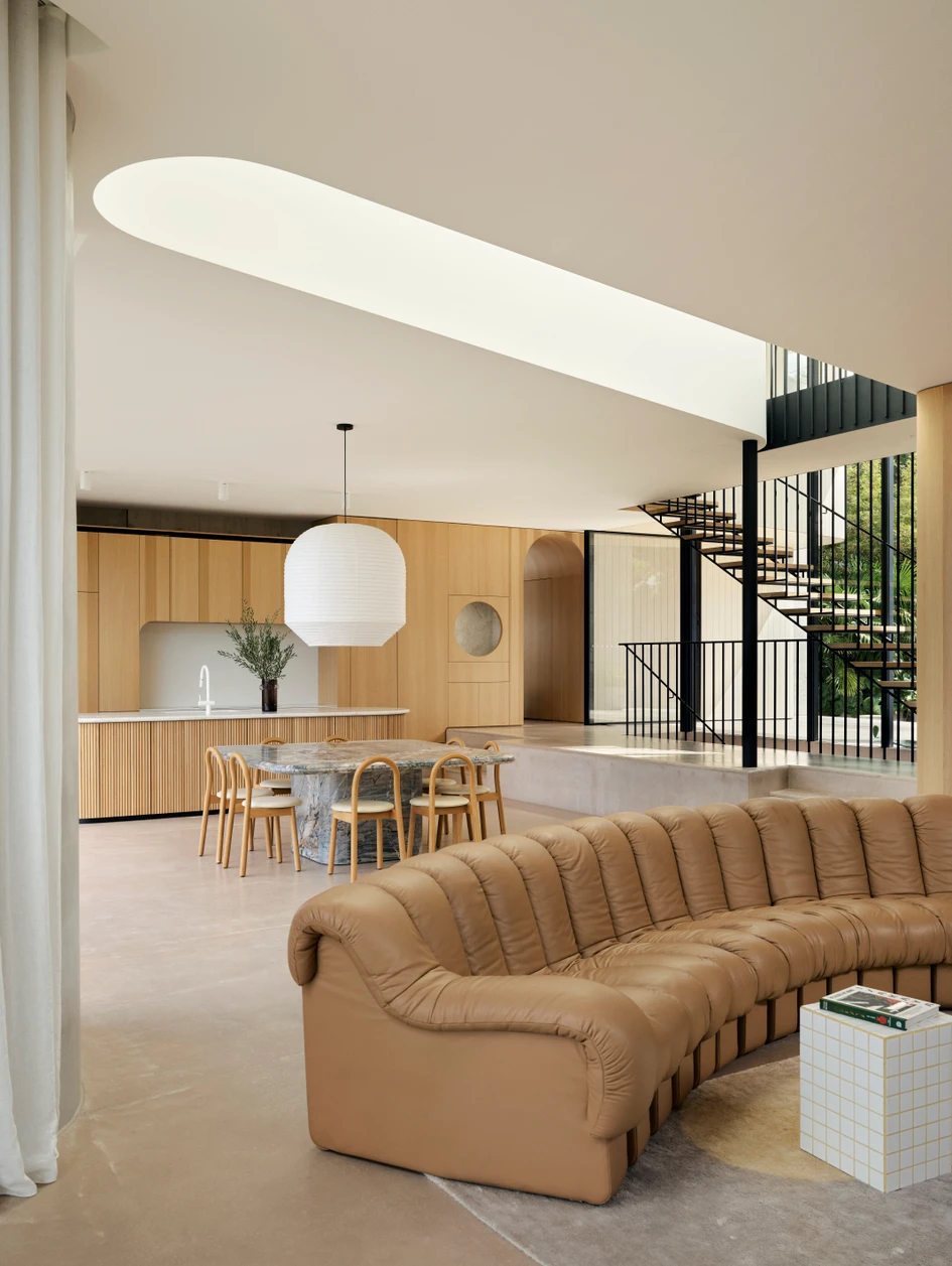 Located in Seaforth on Sydney's Northern Beaches, the home is blessed with vistas of the still waters of Middle Harbour. The Forever House strikes a balance between modesty and tenacity, creating a home that the clients describe as ‘an oasis’ where every part of the design has ‘it’s own purpose and beauty.’ Appearing as a simple concrete form more akin to an object floating on the land rather than something built to be entrenched in it. The home operates in a constant state of calm; the considered tube-like form combines with a careful play of voids to both draw light deep into the home and to separate adult and child zones within. Whilst its footprint is simple and unassuming, there are still enough spaces to escape to when one needs to find solitude. Off-form concrete and timber combine as the dominant materials of the home's palette to create a home both solid + robust, or light and inviting. A balance of positive and negative forms create an arrangement of purposeful spaces for living in a home designed collaboratively with quality and longevity in mind.