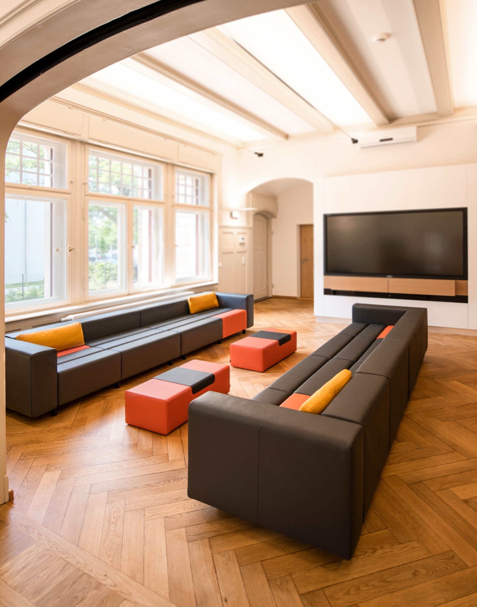 As part of the rehabilitation work the Dresden interior planning office ehrlich+richters was commissioned with devising the concept for FSD's interiors. The creative interior designers began by immersing themselves in FSD's work, which is highly technical in nature on the one hand yet also visionary and future-oriented on the other. For the multi-purpose consulting rooms ehrlich+richters selected the innovative modul21 furniture system. The modular and highly adaptable seating accords perfectly not only with FSD's self-concept but also with the character of the work performed in the rooms, with the 20 cm segments on which the furniture system is based enabling a perfect fit in the various functional areas. Thanks also to the high-quality materials and use of the modul21 elements for colour accentuation, a timelessly modern ambience has come about in the stylish, historic interiors, lending the rooms a unique look of their own.
