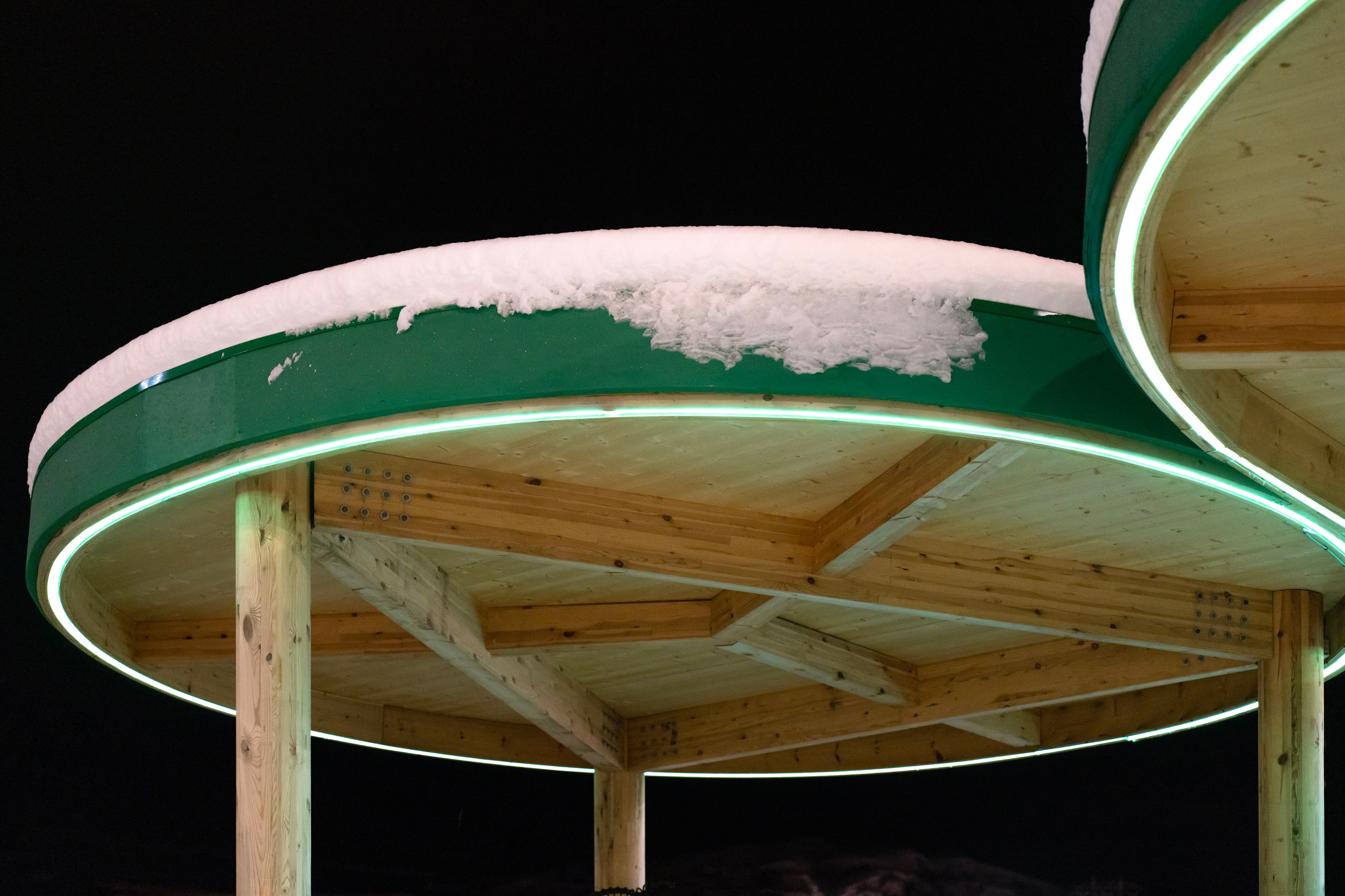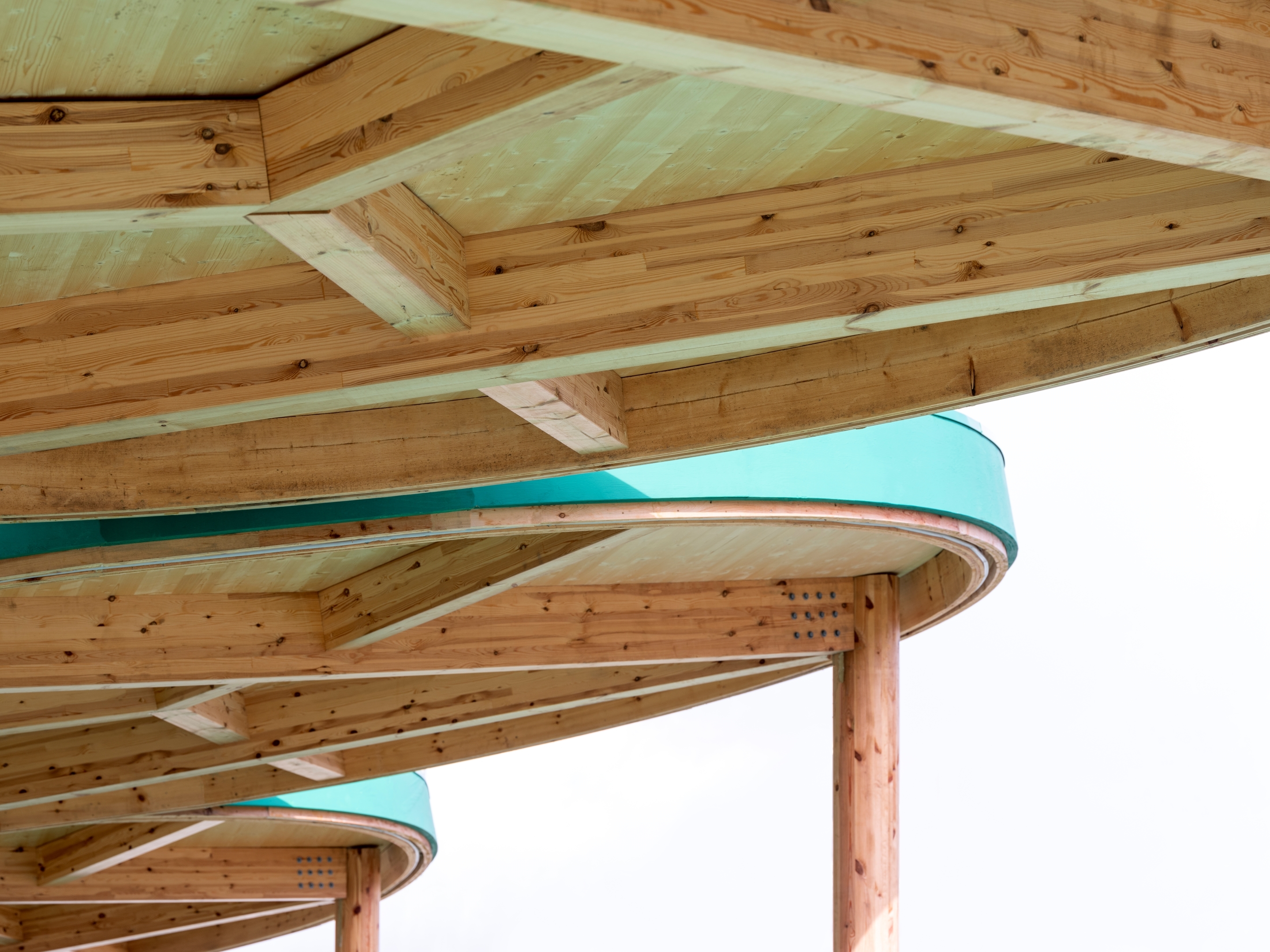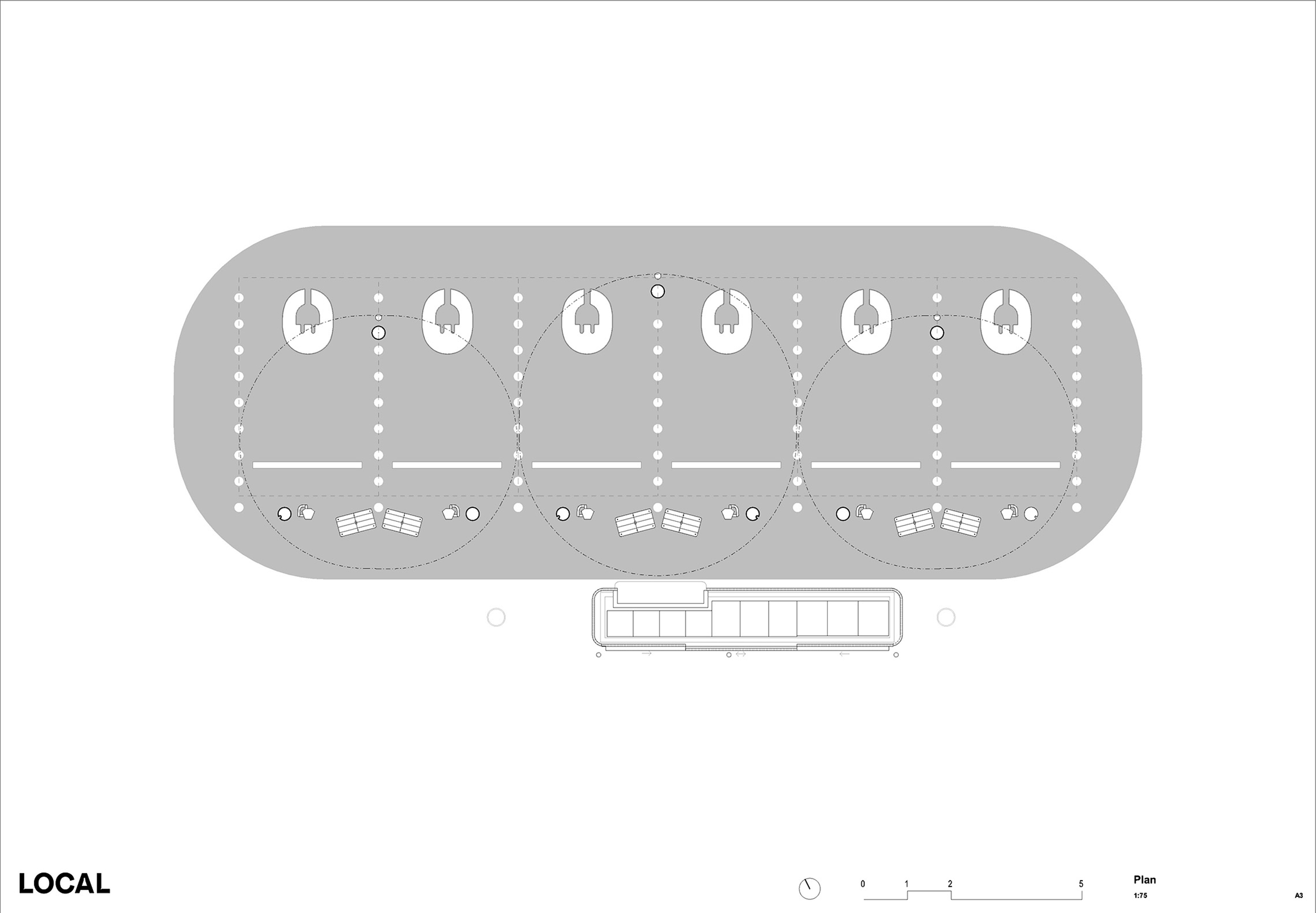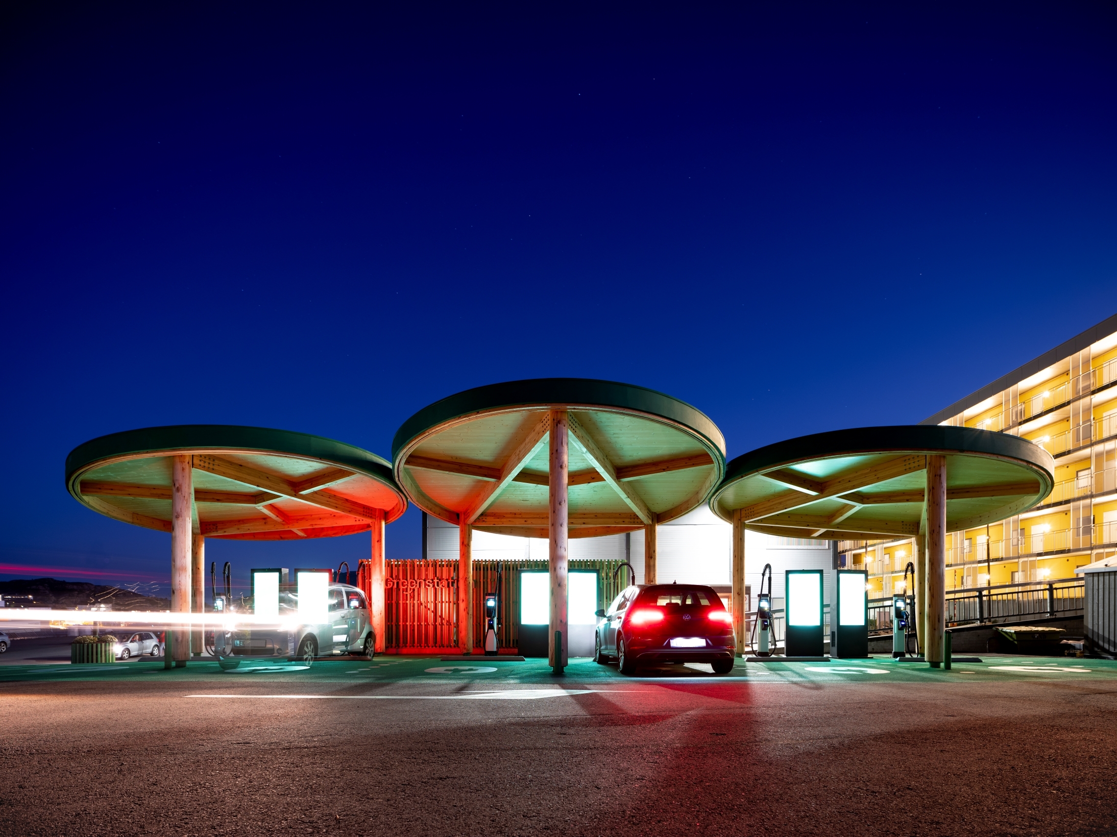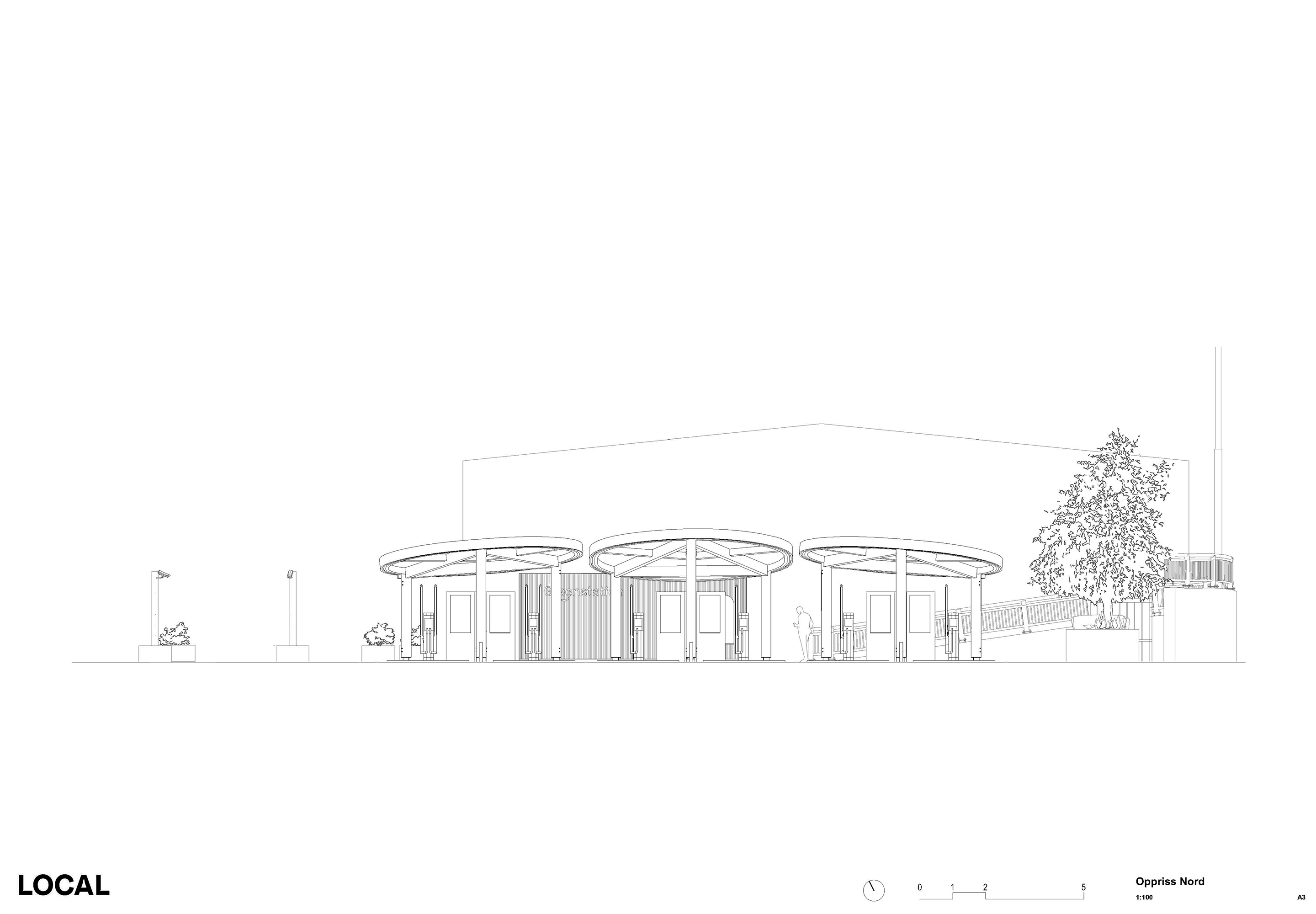 LOCAL has been working in close collaboration with them to develop the energy station of the future. The project is based on a 100% wooden canopy that can be implemented at different scales from 2 charging points up to 24. We are not building a roof but a landscape where the elements together create a dynamic and welcoming environment. The top is either planted soil of wild local vegetation or sedum with the alternative of also providing solar panels.