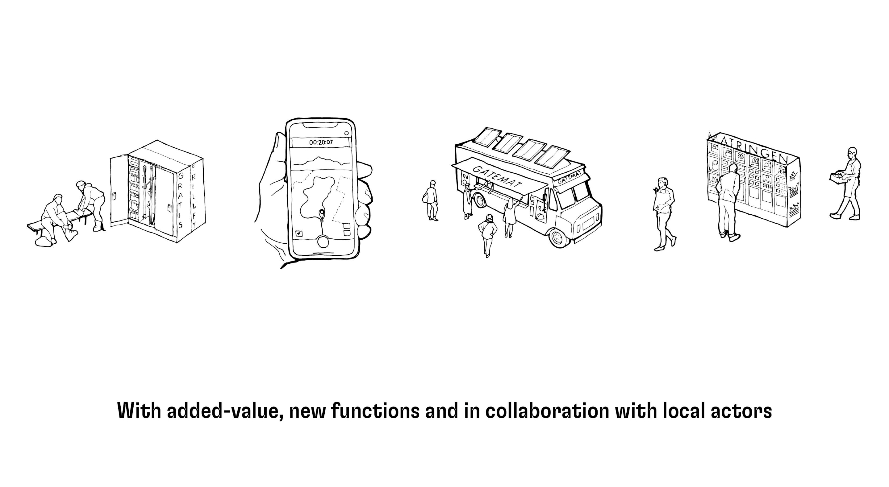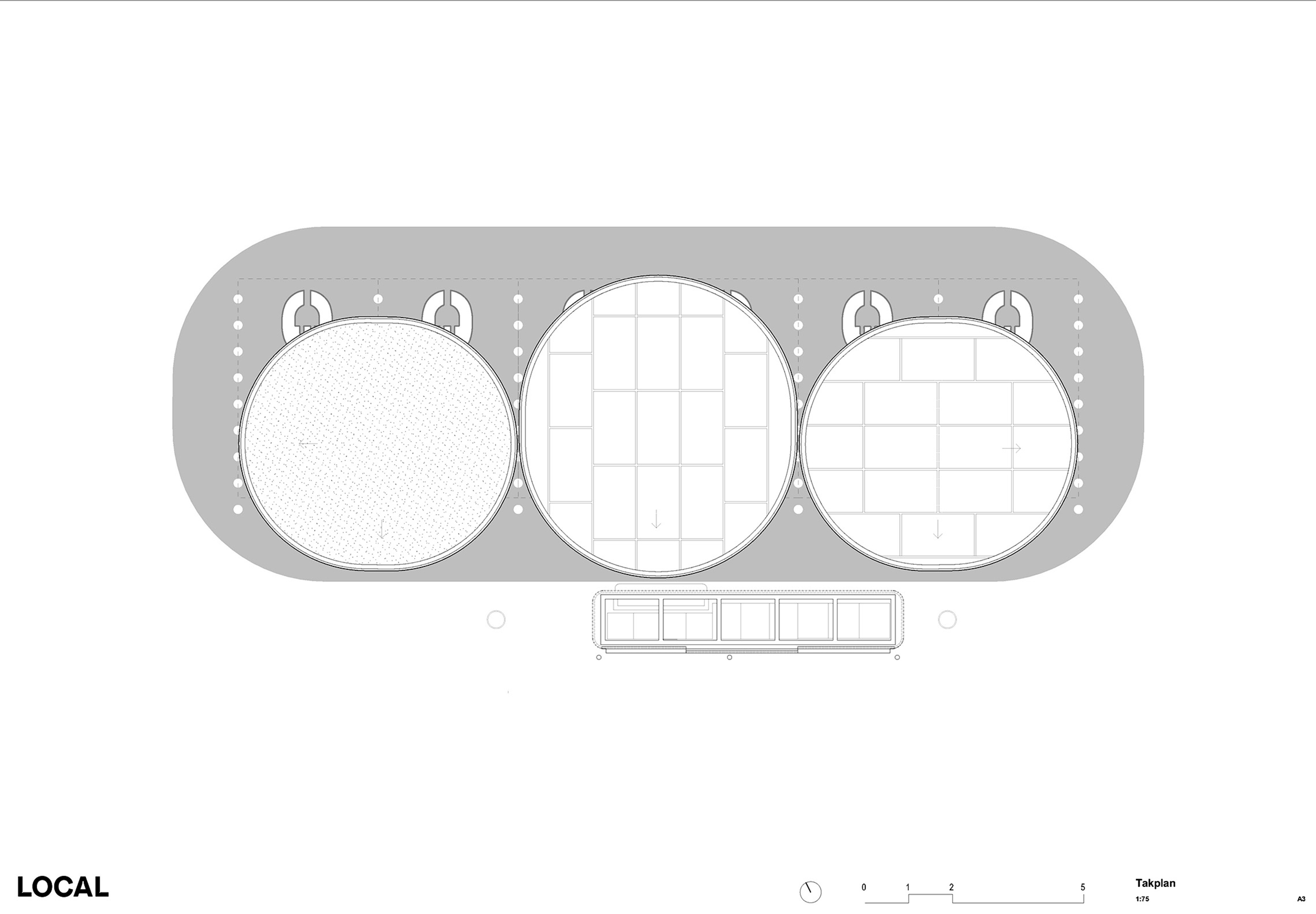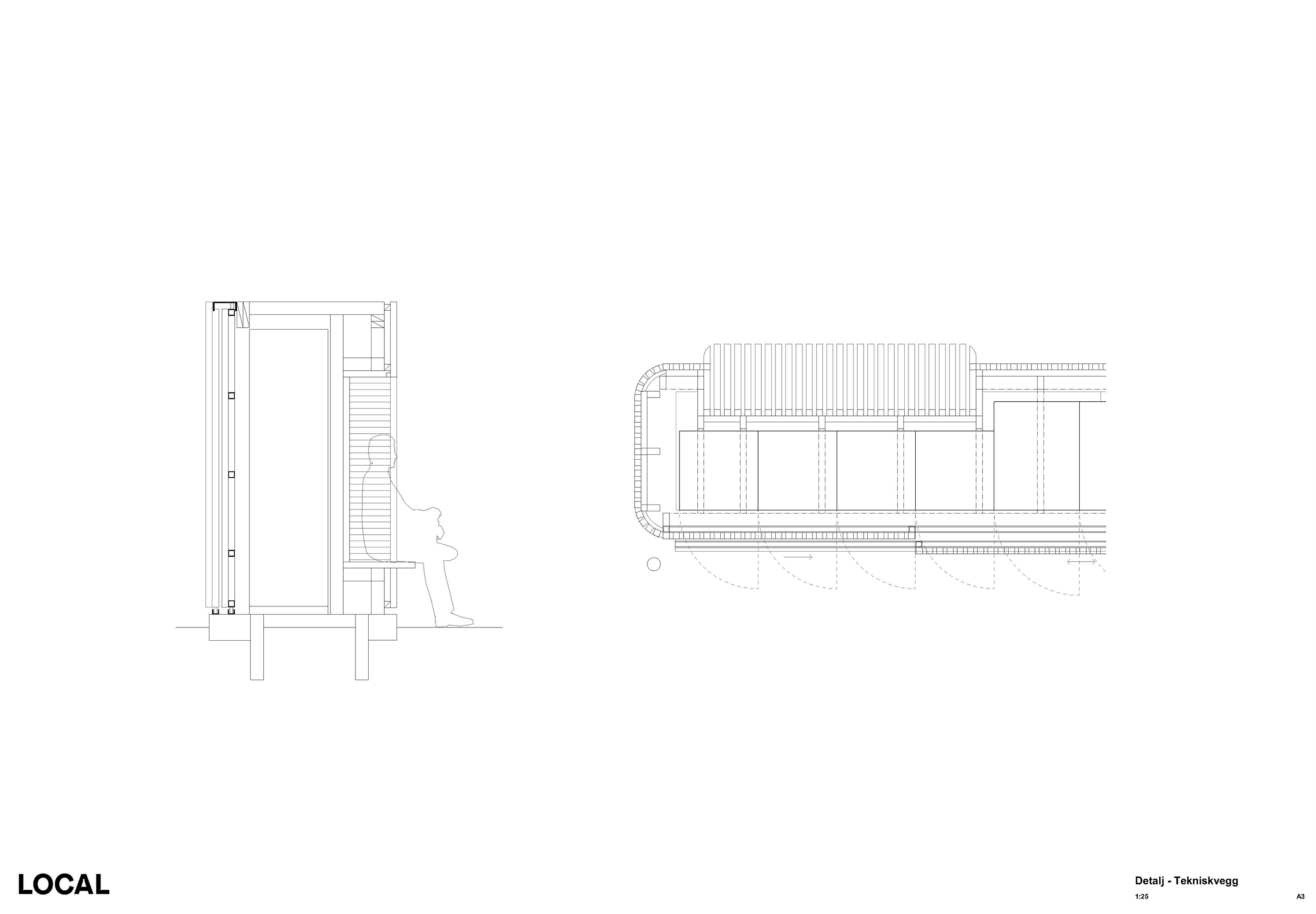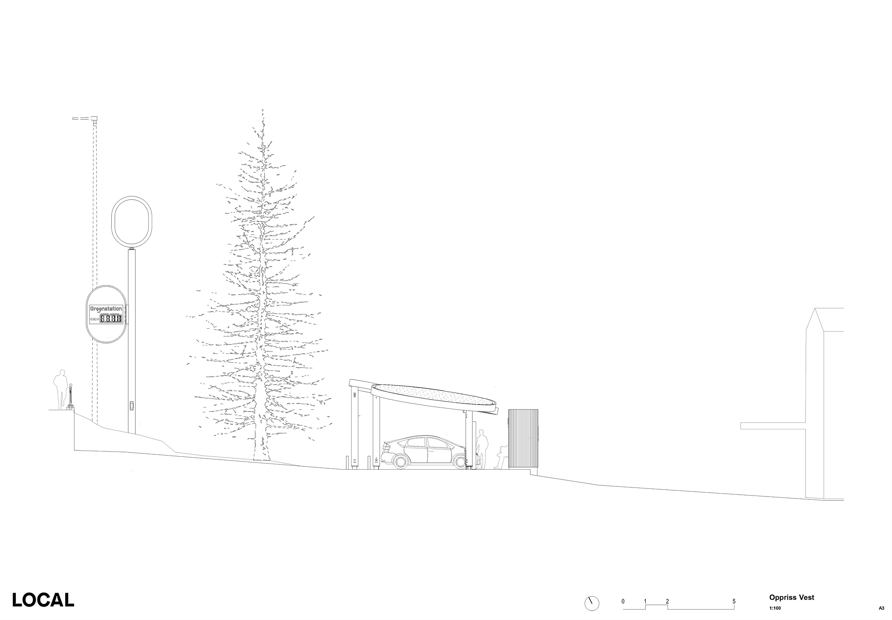 The floorscape of the station is playing a central role as an urban carpet that blends functional mobility with the qualitative landscape. The central clearing in the middle of the station becomes a meeting place for stretching and breathing in vegetation that celebrates local specifies. Technical elements are blending with added value functions so that batteries are integrated with a vending machine for local food producers, a pick point for post-delivery, storage for free-to-use items in connection to a digital map showcasing local hikes and place of interest within a 15 min walking radius, as well as water point, toilets, and recycling point.