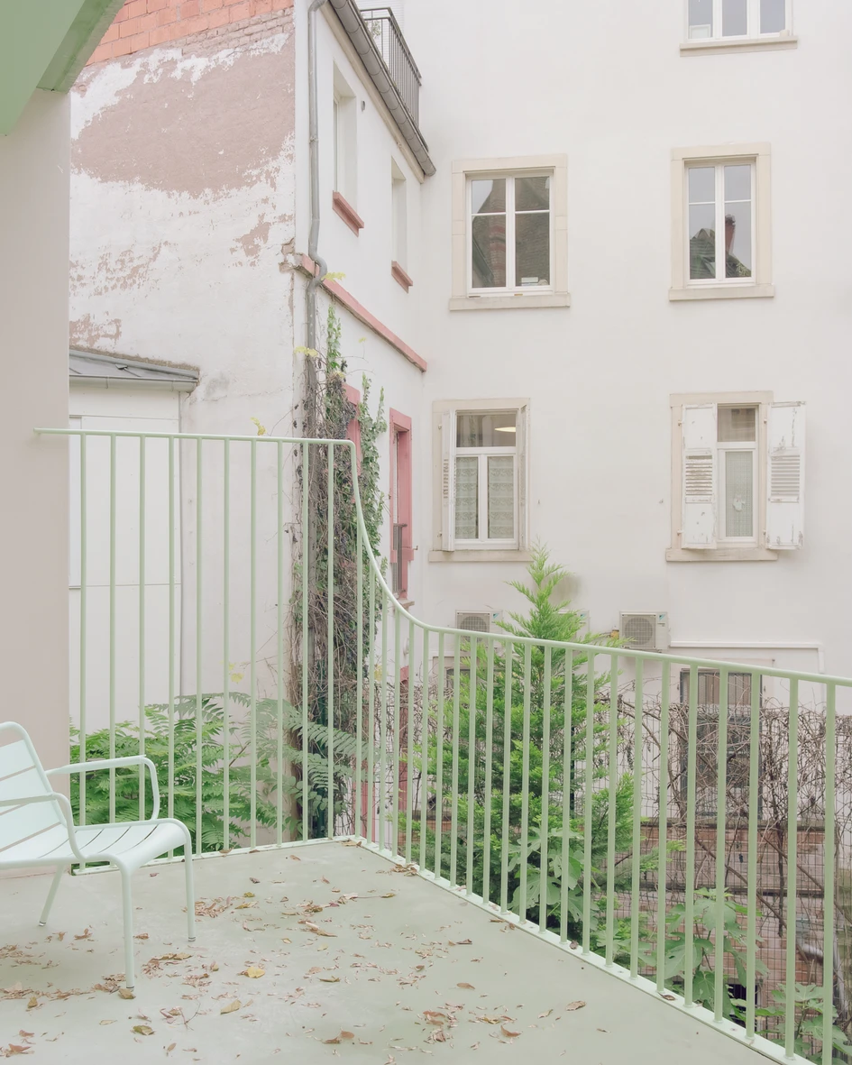 At the heart of the block, the outdated balconies overlooking the garden were replaced by new green concrete terraces, sized to suit each floor. Thermal renovation of the brick facades was carried out from the inside, using hemp concrete sprayed on to preserve the inertia of the old walls.