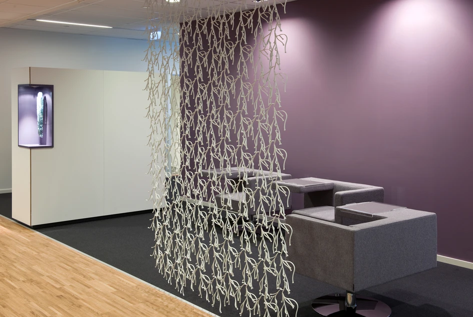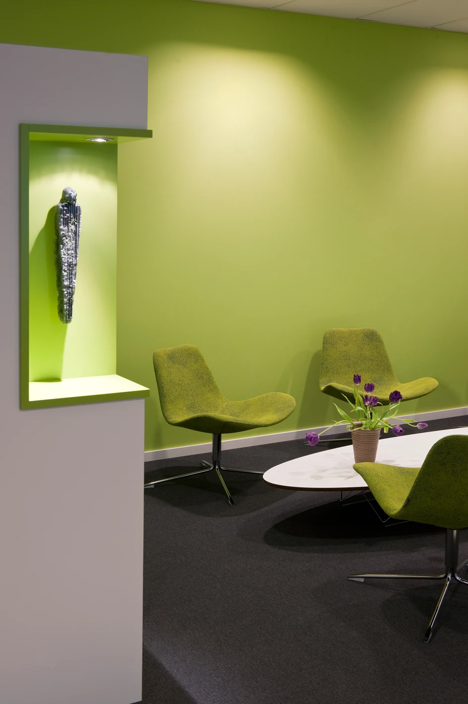 The headquarters in Kongsberg, Norway has been furnished with a colourful mix of Offecct products. Each meeting room has got its own colour code with products matching the interior and walls. Offecct has delivered Spoon easy chair, Solitaire easy chair and Palma easy chair in different colours and patterns.
