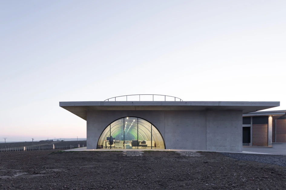 Chybik + Kristof Architects & Urban Designers have completed construction of the Lahofer Winery in the Czech Republic. Nestled in the Moravian countryside, the Lahofer Winery fuses the region’s longstanding wine tradition with a contemporary design in constant dialogue with the surrounding vines. Reflective of modern wine-making processes, the building brings together three distinct interconnected structures – a wine-making facility, the winery’s administrative base, and a visitor center and adjoining tasting room. Emulating archetypal wine cellars of the region, the vault of the winery rests on a grid of arched beams. Acting as a mirror of this shape, an undulant roof serves as an amphitheater for cultural events open to both locals and visitors, merging the winery into the ground – and the culture – on which it rests.