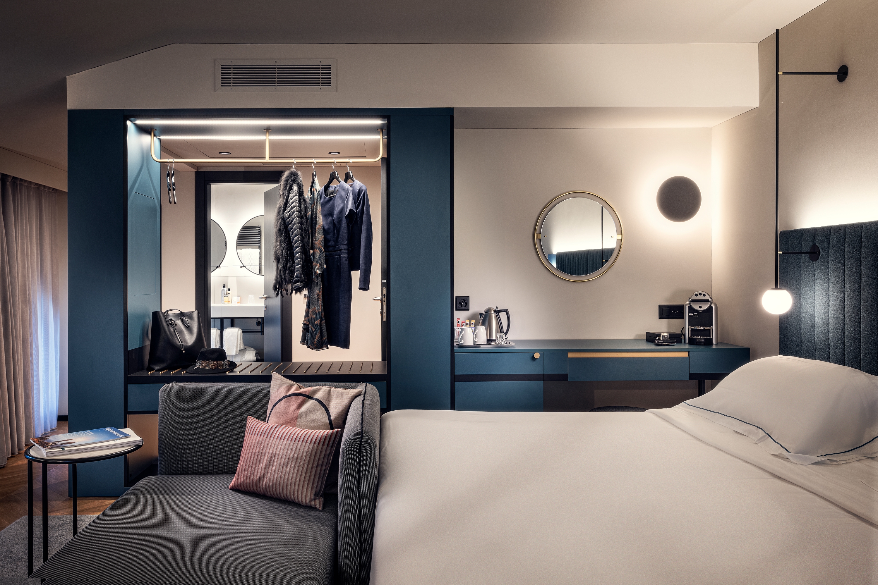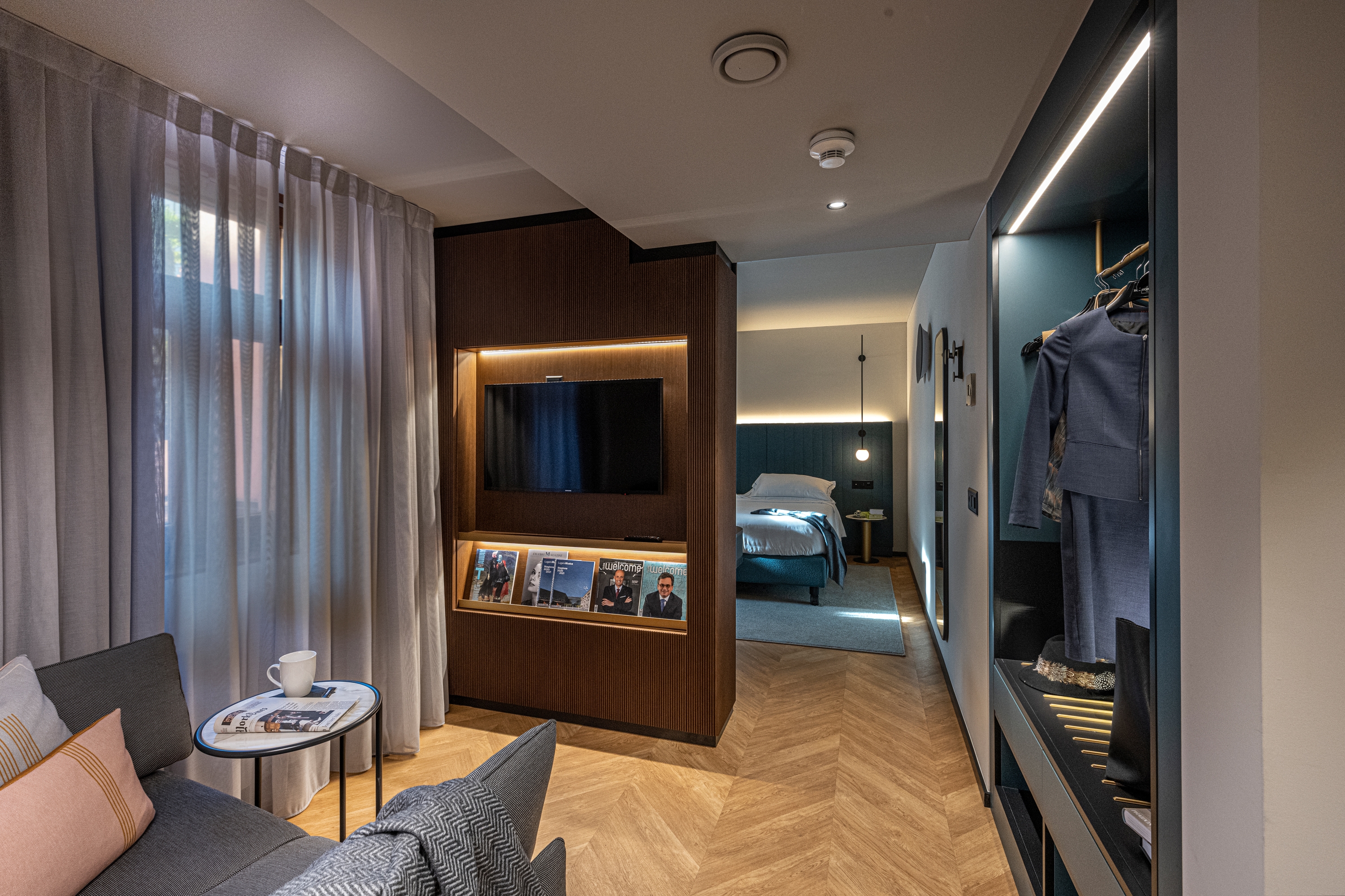 The Lugano Dante is located in a strategic position, in the historic center of the city, a few steps from Piazza Riforma and the Town Hall, less than 10 minutes far from the LAC and the beautiful lakefront. An important meeting point for those who are in the city for leisure or for work, a reference point that can offer a temporary stop or a pleasant stay, taking advantage of the comfort of the most intimate spaces of the rooms or the versatility and functionality of the spaces for common activities. For these reasons, the Concept Design, developed for both types of spaces, is aimed to define a more recognisable character for a place open to the city, that can present itself as an urban hub.
