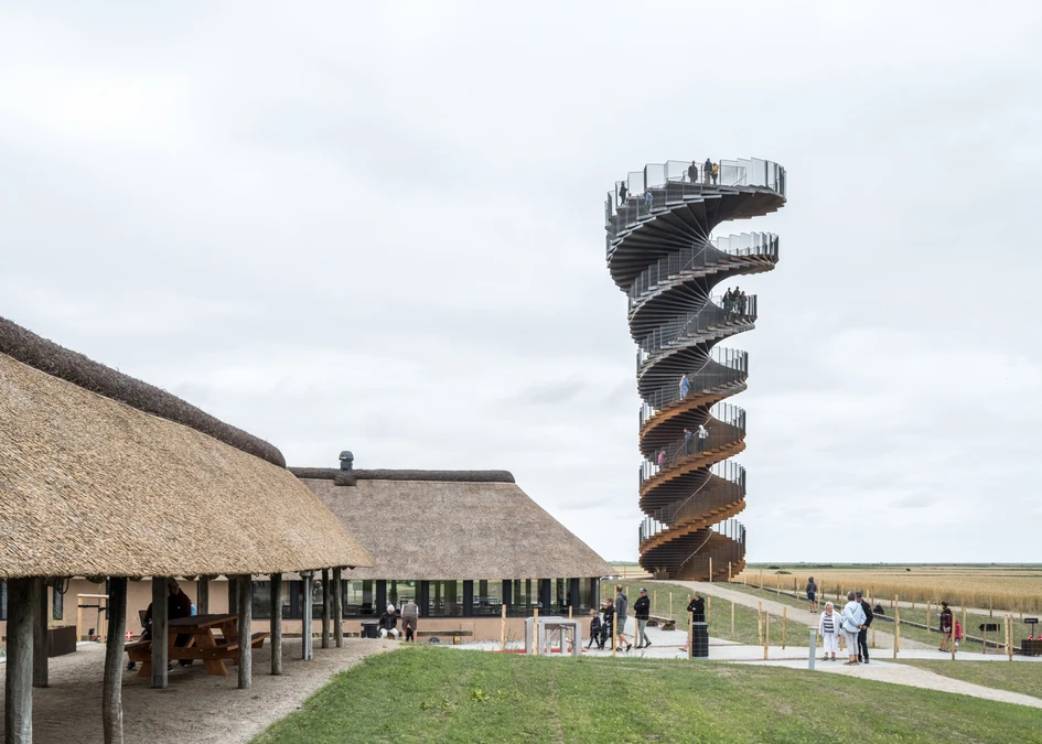 BIG worked on the design for the observation tower as part of a local partnership with Marsk Camp Group to create an experiential destination that presents the unique landscape from a new perspective to tourists all over the world. Wadden Sea National Park is one of the last remaining large-scale intertidal ecosystems in the world and is widely known for its unique natural environment of sea, dune, woods, heaths, fauna, and wildlife.