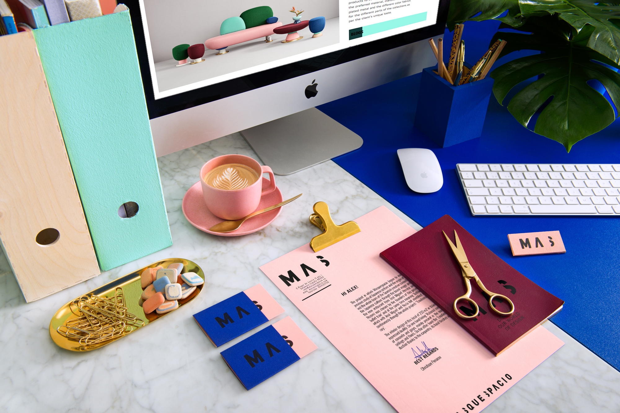 El diseño del espacio de Masquespacio empieza por el rediseño de su imagen de marca que se compone por una parte por el logotipo y por otra por su icono definido como ‘Mas’. La letra ‘S’ en este caso divide cada uno de las aplicaciones gráficas en dos partes distintas, con lo que se quiere representar el valor añadido que ofrece Masquespacio a cada uno de sus proyectos. En cuanto a los colores la marca permite jugar continuamente con los diferentes colores más “trendy” del momento y según cada proyecto. Este hecho demuestra claramente el carácter versátil de Masquespacio como estudio multidisciplinar que trabaja tanto en proyectos comerciales como exclusivos. El mismo concepto se lleva a cabo a través del espacio que juega con los diferentes colores y particiones de la identidad gráfica.
