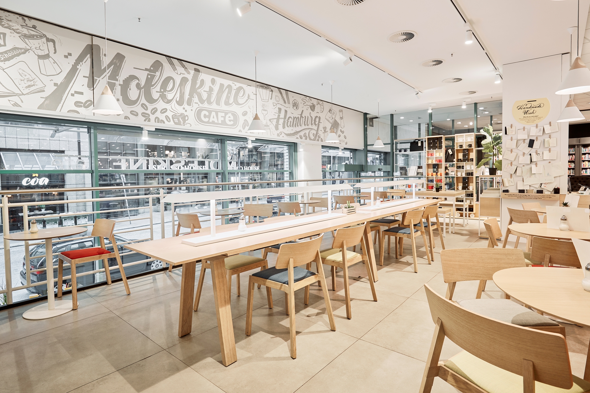 The Moleskine Café is a brand new way of living café life that reinterprets the idea of the café littéraire in a very contemporary vein. Mixing elements of the café, art gallery and retail store, it provides a creative and inspiring space which brings together the idea of a gathering place from the past and the core values of the Moleskine brand, which embrace and foster creativity in all its facets. The cafés also feature sales corners where Café guests and visitors can browse through the ecosystem of Moleskine objects and purchase their favourites tools.