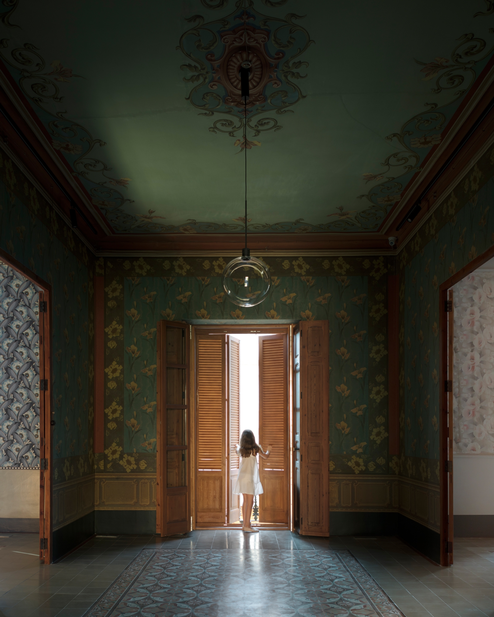 Cabe destacar también los suelos de baldosa hidráulica, que se encuentran en perfecto estado de conservación y con los papeles anteriormente descritos, forman un conjunto de gran armonía cromática.