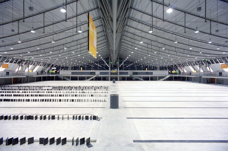 The Neue Messe exhibition centre venue is characterized by minimal use of the landscape, short paths and exhibition halls with distinctive curved roofs. The Messepark’s wedge shape makes it easier to get one’s bearings. Changes in level create ideal access for loading and unloading. The congress centre and the multifunction hall - with an outline like a circus big top – are visually distinct from the exhibition halls. The planted multi-storey car park rises above the autobahn and the planned ICE line and acts as a kind of “super sign” for the venue. The Neue Messe at Stuttgart airport responds to the topography of its surroundings, and makes sensitive use of ecological resources. A solar power array, 40,000 metres in size, is integrated into the roof. The structure’s free, curved lines are underpinned by a clear, rational formal vocabulary. The whole complex looks light and expansive.