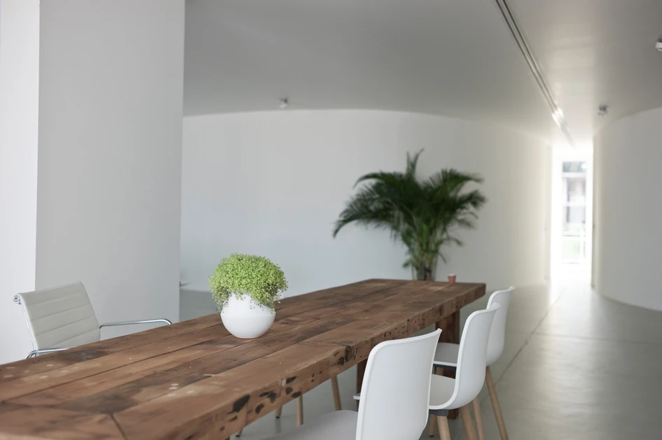 The proposed plan relies on three curved walls to define the spaces generating a re-orientation of the apartment towards the views with an expanded and open living, dining and entrance.