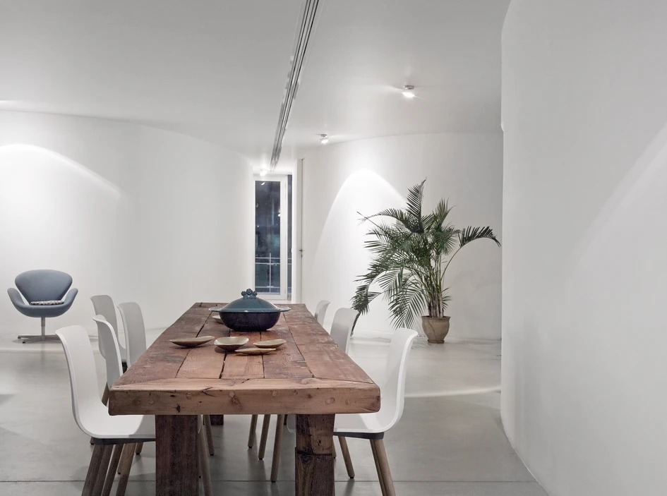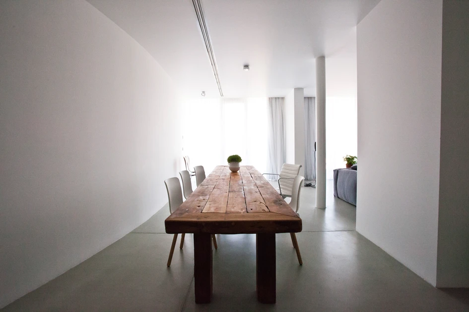 The basic approach is to eliminate the existing layout of the apartment and to focus on intensifying its potentials. The NM apartment enjoys unique views on to the Mediterranean sea from one side and the dense fabric of the Gemayze district from the other, which we enhanced by opening up the facades to allow total transparency.