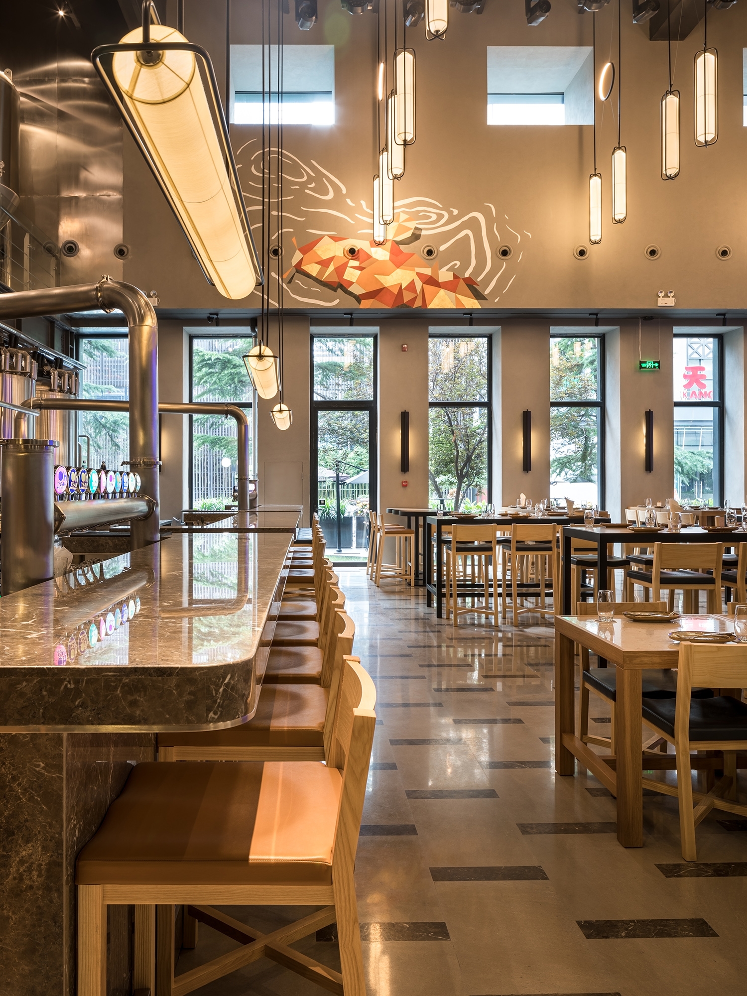 The well-travelled Chinese founder wanted to develop a new atmosphere that would challenge the hard-surfaced, grungy, industrial garages of your typical craft beer bar. They wanted to create a comfortable space where people could sit back with friends for hours-on-end, enjoying delicious bites and uncomplicated, easy-to-drink, fresh beer. hcreates was selected for the project due to their reputation for bar and restaurant design of some of China’s most iconic brewing experiences, including Liquid Laundry, Boxing Cat Brewery and Little Creatures.