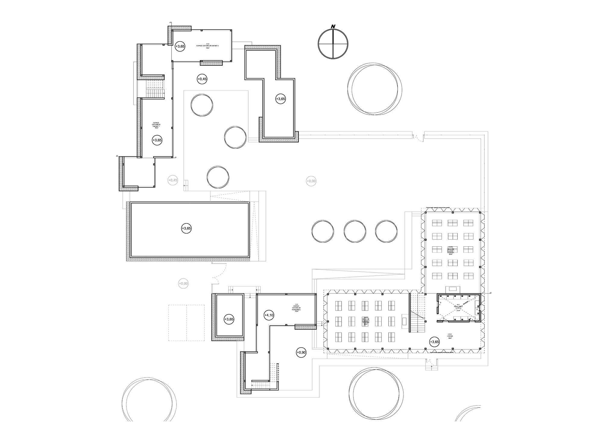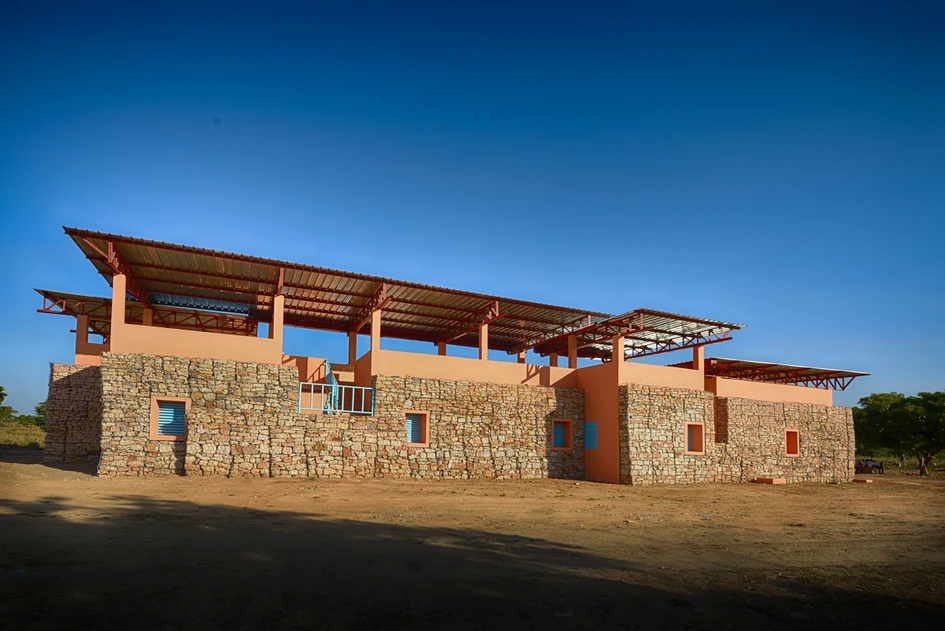 Inspiré d’une organisation spatiale traditionnelle, l’ensemble de bâtiments s’adapte à l’environnement extrême de cette région sub-sahéliennes selon trois axes.