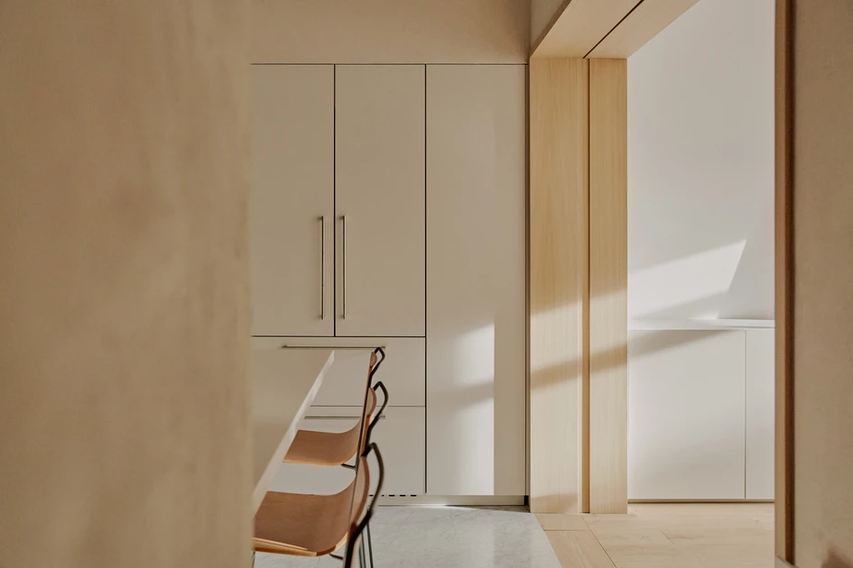 As human beings, we are heavily influenced by the atmospheres surrounding us, effortlessly shaping our perceptions and changing our attitudes depending on the space we inhabit. In the Serial Vision Home, materiality assumes a leading role to help meet these premises and cover two primordial functions: setting the house’s mood and making every space intuitively identifiable. In order to make these purposes palpable, a soothing colour palette takes over the walls, ceilings and floors. This combination of tones creates a natural and pleasant environment; a sense of calmness reigns the space.