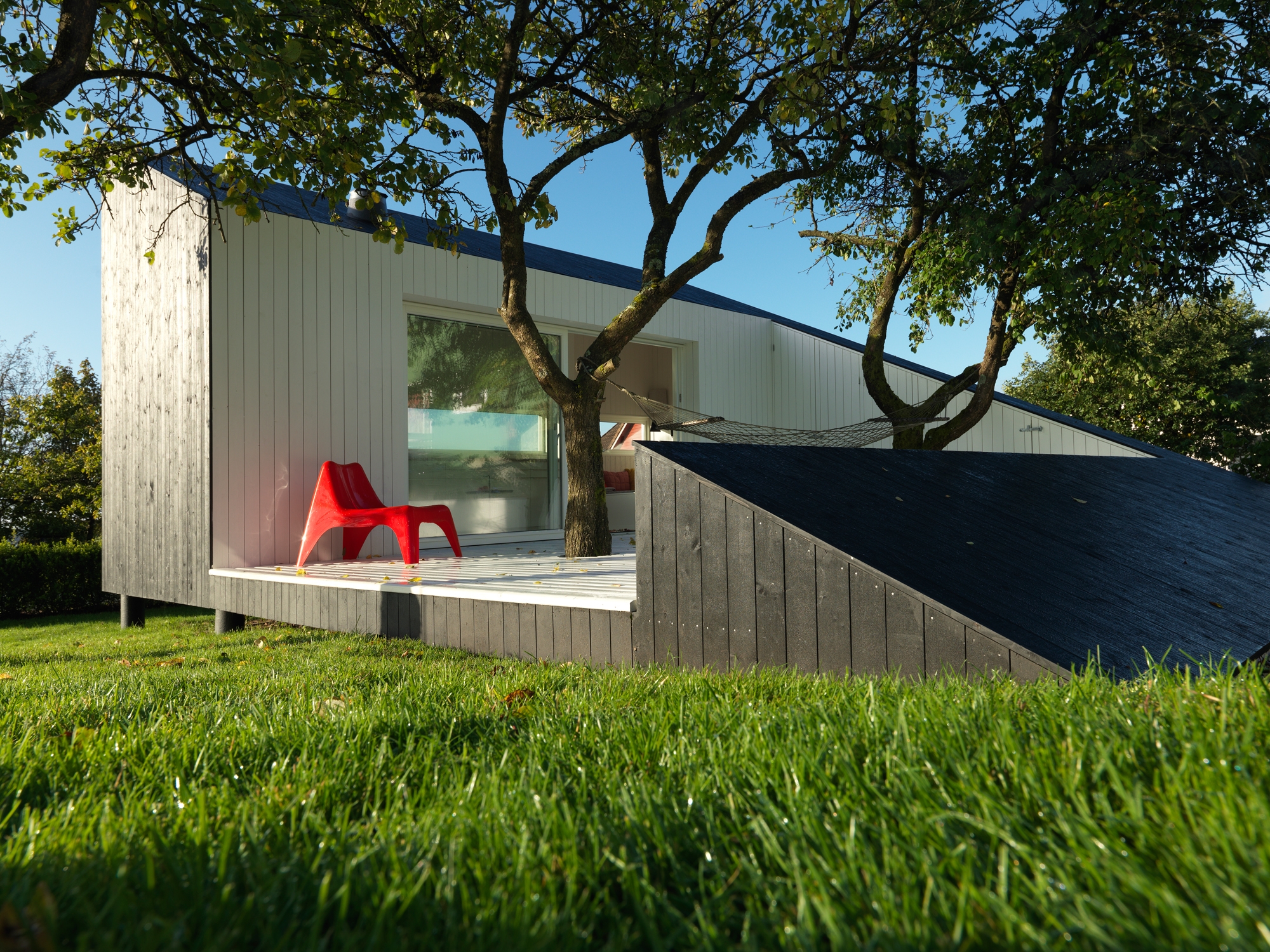 «Slice» describes the little house Todd Saunders drew in a small garden in Slåttevik just outside Haugesund in Norway. The challenge was: how do we design a 15 m2 sized house in the most exciting way possible? The buliding was supposed to be small, yet have a perfect design.