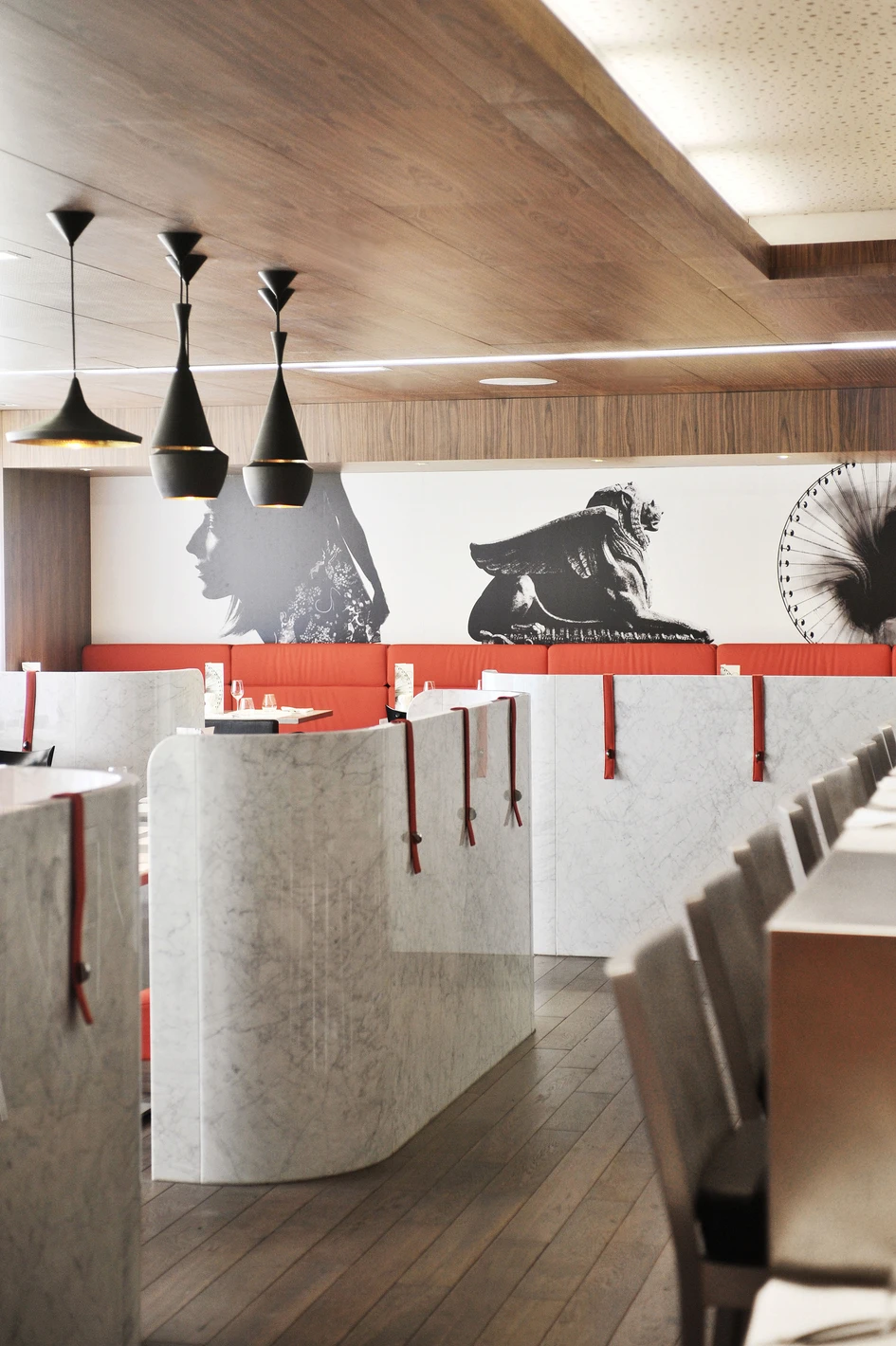 The sustainable and convivial sensory aspects of Norguet’s new interiors also feature harmonious contrasts in the décor, such as the coffee and silvery colours in the Trois Dôme restaurant and the red and black in the Le Melhor bar, the whole theme punctuated by understated yet original furnishings with attitude.