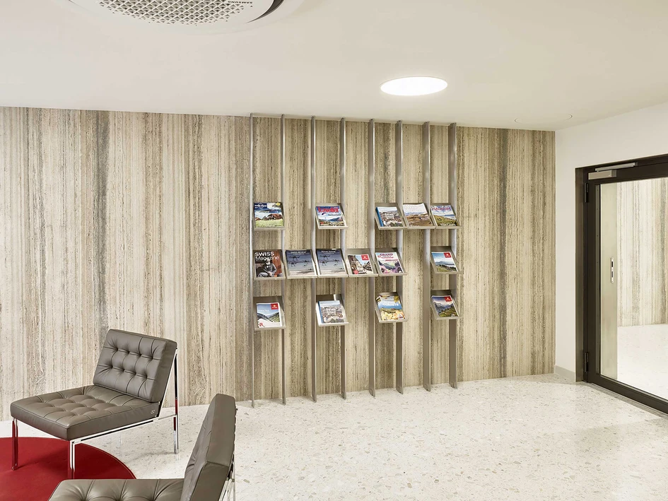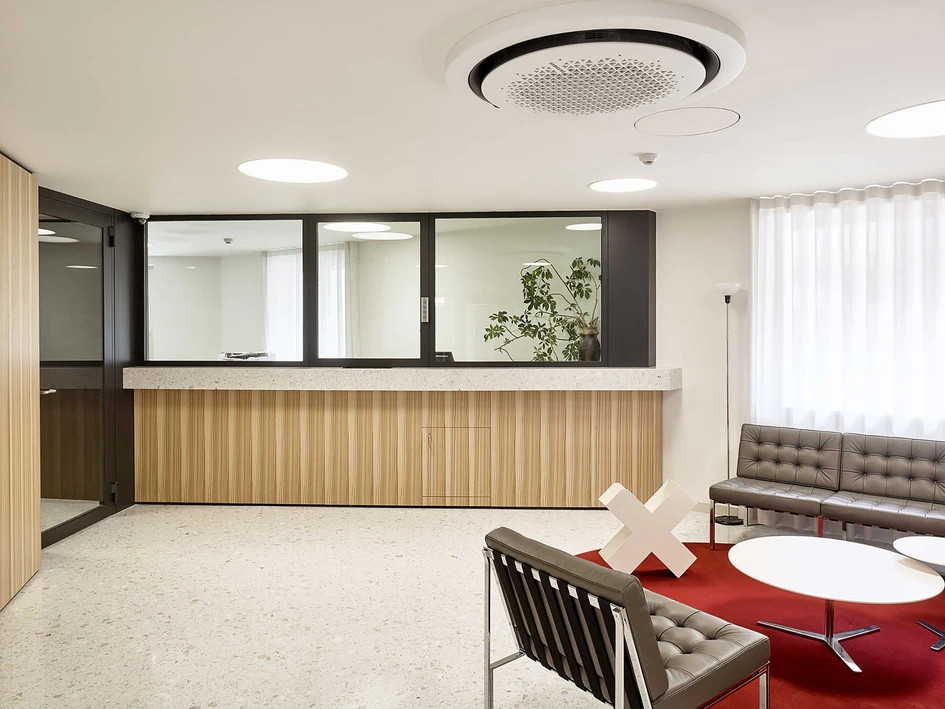 The concept was to create a meeting and exchange platform under the patronage of the consulate and to represent Swiss values in India. With this in mind, an overall material concept was developed, which subtly represents the various entities. The new consulate allows and demands more openness towards visitors and amongst the entities themselves. The four entities are grouped around a common centre – an analogy to a village and its main square. The layout is organised in such a way that interactions and synergies between the various departments are encouraged and fostered by visual connections and by blurring boundaries between the four departments.