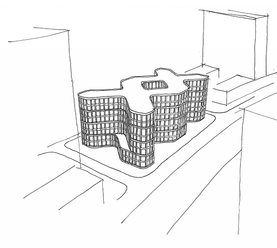 With a gross floor area of 31,000 sq. metres, distributed over eight floors, it offers space for 900 workplaces. Two underground car park levels provide more than 200 parking spaces. The complex, consisting of two X-shaped dotted houses, asserts itself in its exposed position and its urban appearance is as plausible as it is formative.