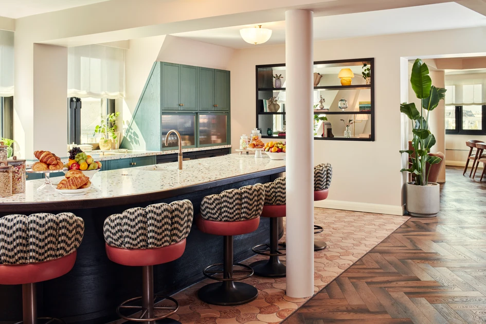 The Apartment, the hybrid meeting and events space which features in every Hoxton hotel, is home to three flexible private rooms, the Study, Dining Room and Living Room, centred around the communal Pantry Kitchen. The Apartment is reminiscent of a 1920s parlour charmingly set within the eaves of the building on the seventh floor, with Mary Wigmaninspired interiors defined by fluid lines, soft, muted tones, vintage lighting, and a touch of chintz. The individual rooms are ideal for private dining, team away days and meetings, while full exclusive hire of the space serves as a super stylish venue for parties, launches, screenings and receptions.