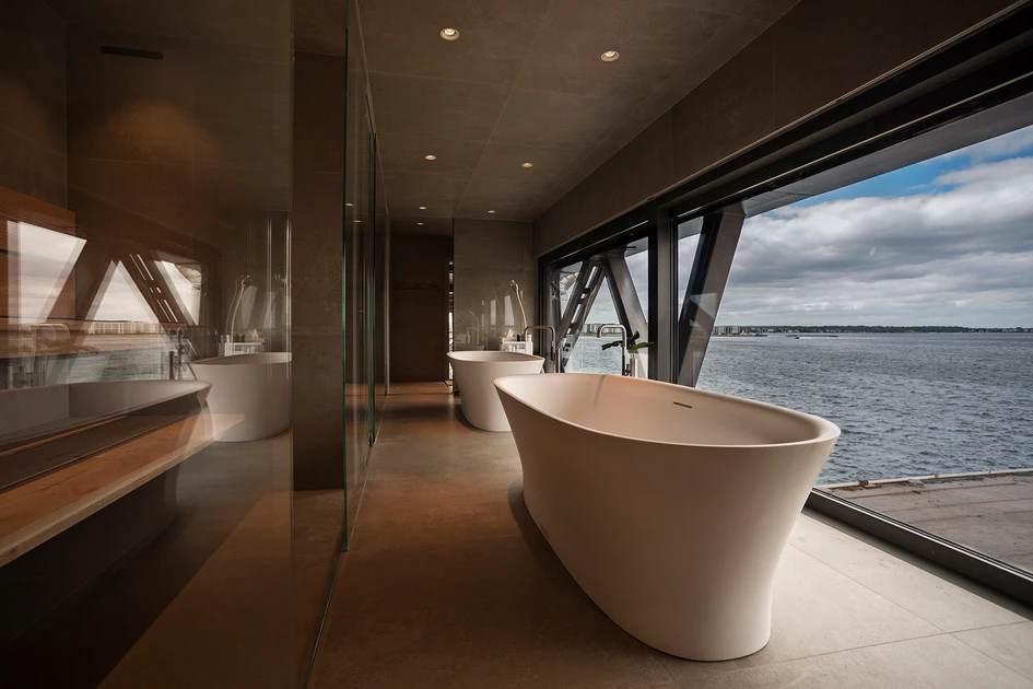 El promotor, Klaus Kastbjerg, y el despacho de arquitectos “Arcgency” eligieron este lema de transformación para convertir la grúa de carbón, situada en el límite del distrito, en un hotel de lujo para dos personas. Incluido en “The Krane”, el diseño de Duravit está muy presente: dos bañeras Cape Cod, una junto a la otra, invitan a una relajación conjunta y ofrecen una vista inigualable al puerto de Copenhague y al mar.