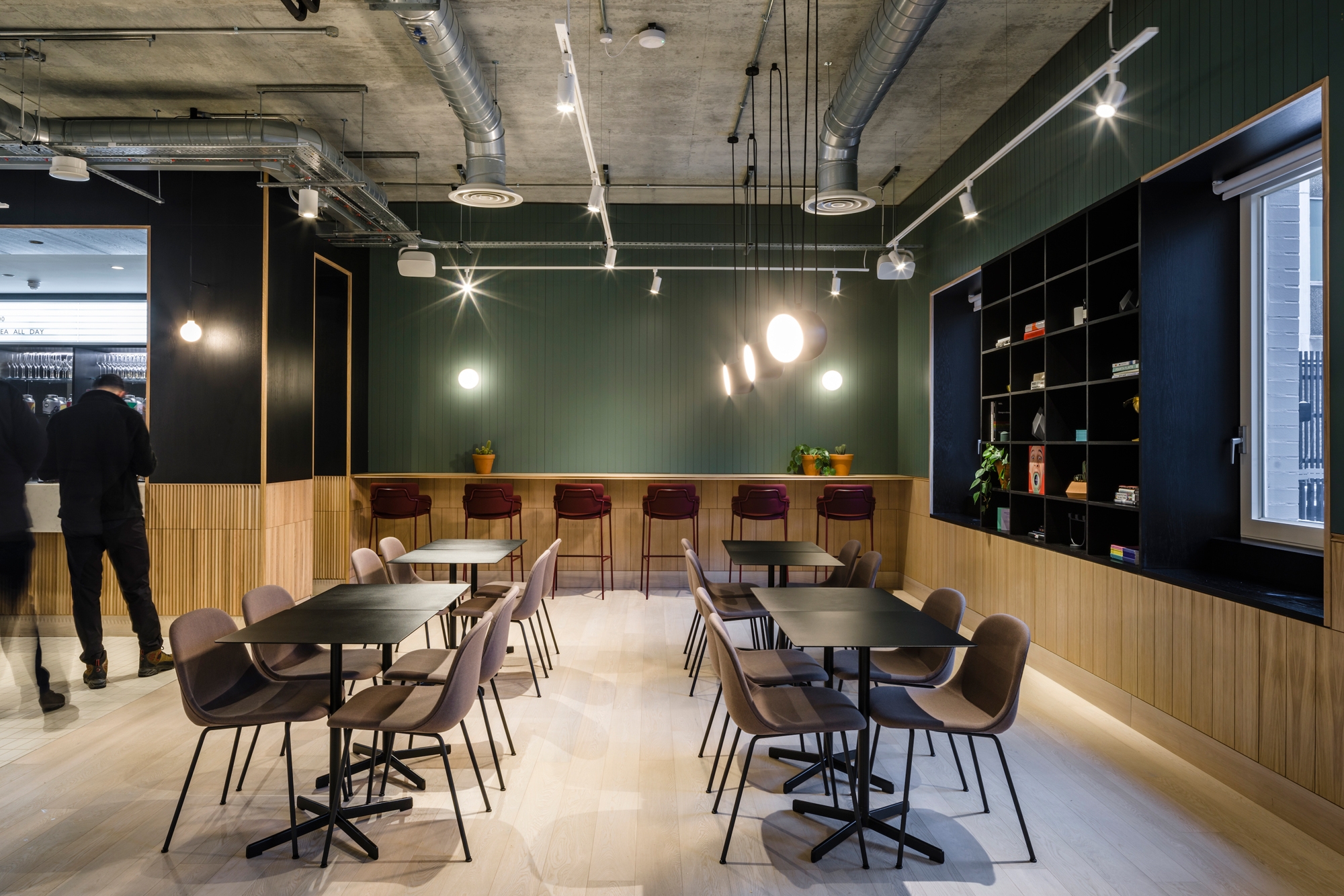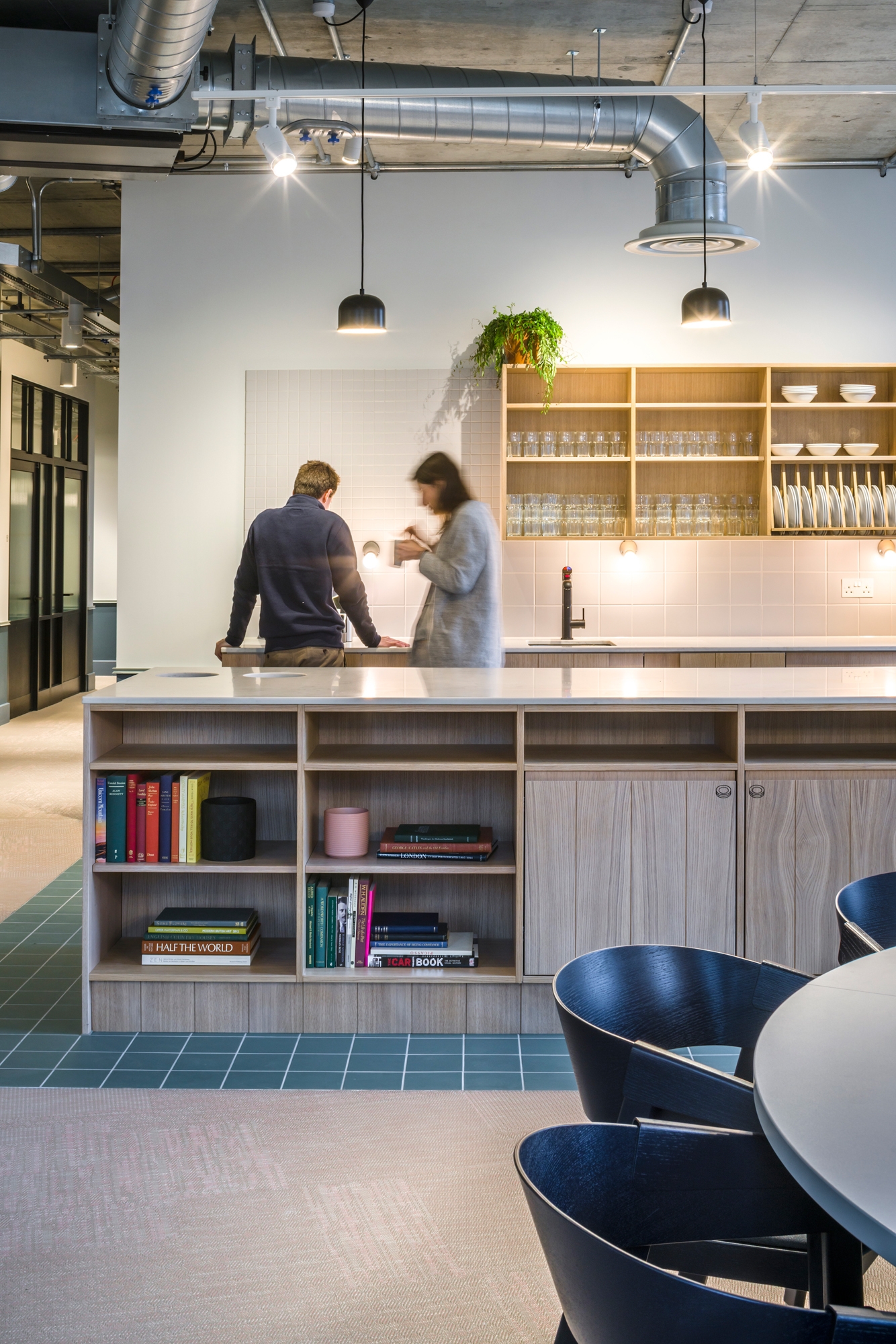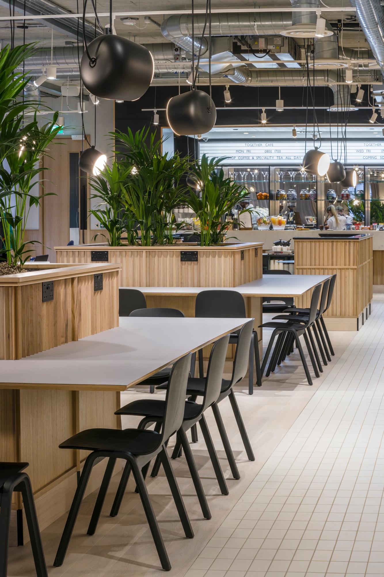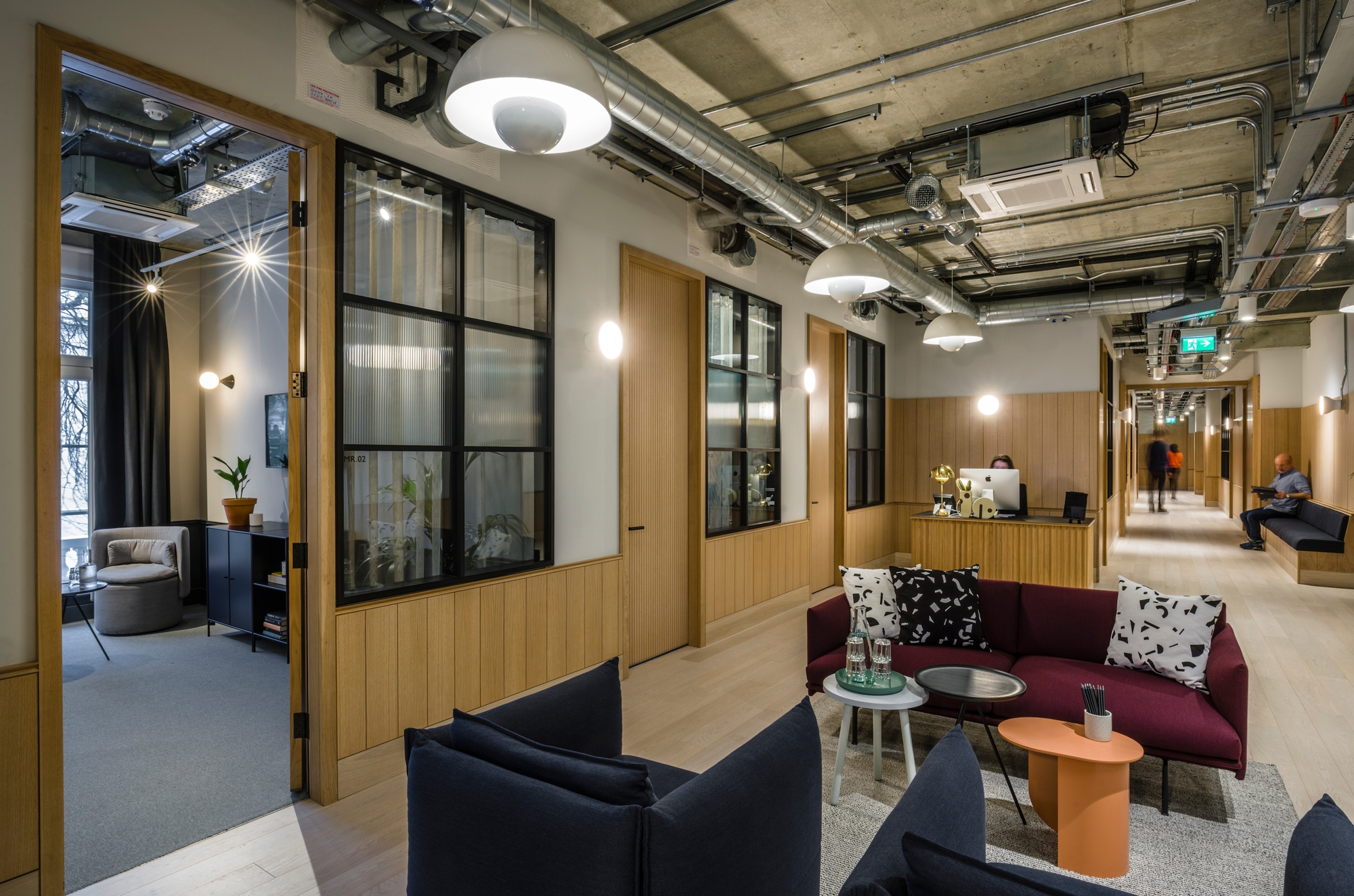 A series of meeting rooms have been organised around Regency functional concepts, such as the powder room, drawing room and garden room. The entire building has been updated for the needs of a 21st century office worker, with a gym in the basement, a large bar on the ground floor (featuring a smoothie hatch), interior and exterior events spaces at ground level, and a series of wellbeing features across all floors, such as a library, music room, games area and mediation space.