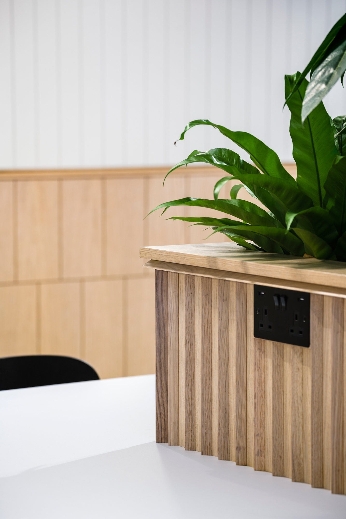 The grand entrance hall mimics the rigorous organisation of the traditional Regency square, with four timber boxes forming the reception, work areas and a meeting space. A new entrance has also been punched through a false portico on the ground floor, thereby reinstating Cubitt’s vision for the streetscape. Georgian proportions have inspired the interiors throughout, including a new feature stair, bespoke furniture and joinery that references the period timber works that once occupied the site.